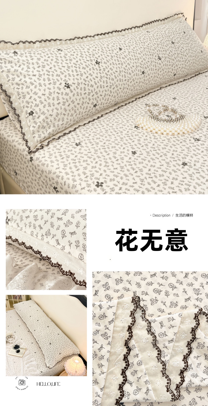 • 91家纺网 家纺一手货源 找家纺 圣比熊 2026新款A类云朵棉蕾丝花边枕套宿舍情侣双人加长枕芯内胆套 花屿轻梦(单层蕾丝花边)