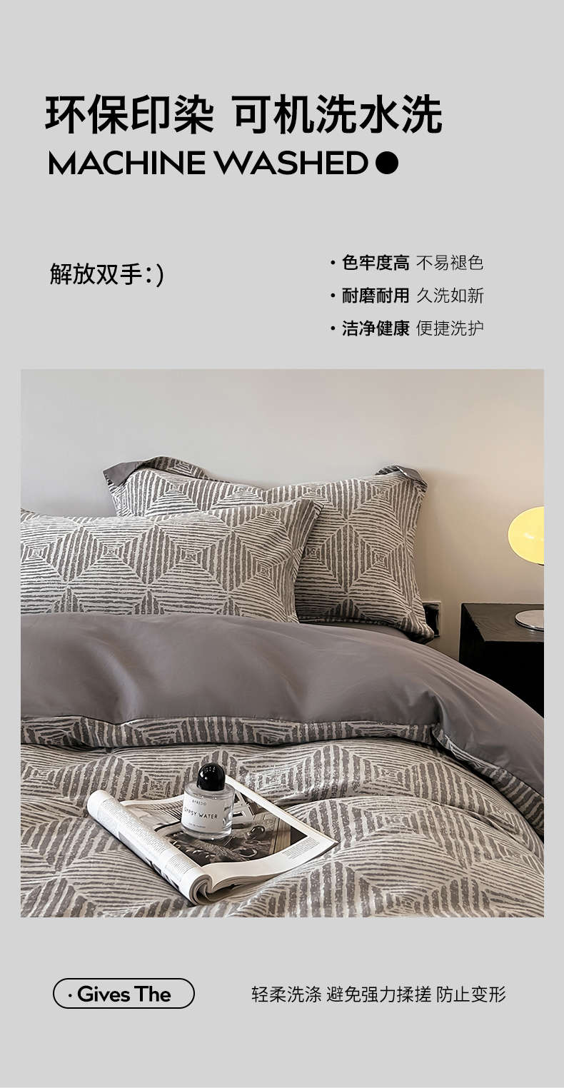 爱丽丝 2026新款全棉色织提花四件套 简雅几何-灰