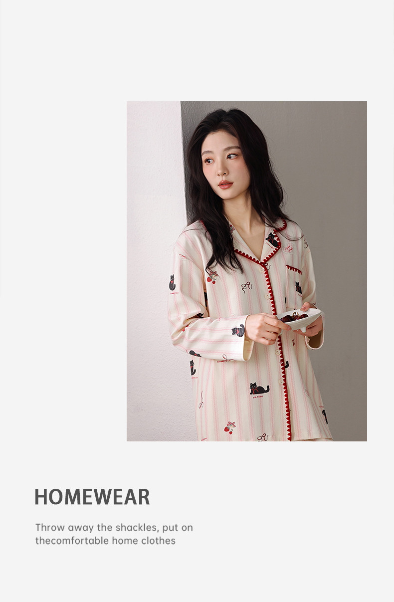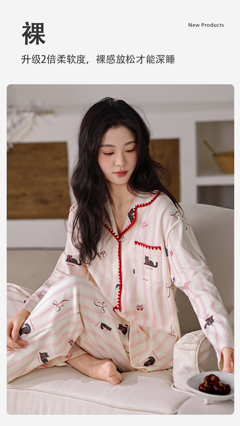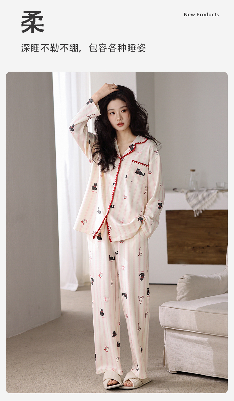 商品名称:洛兰沙家居馆 2026新款长袖睡衣女款纯棉春季印花开衫翻领家居服可外穿套装第一批 45141