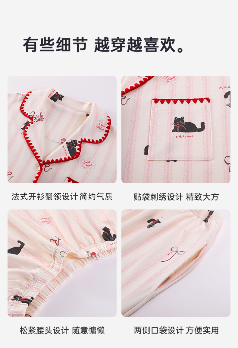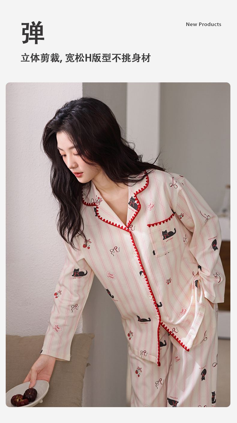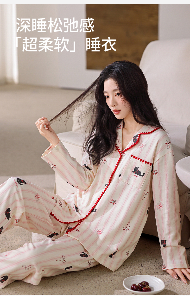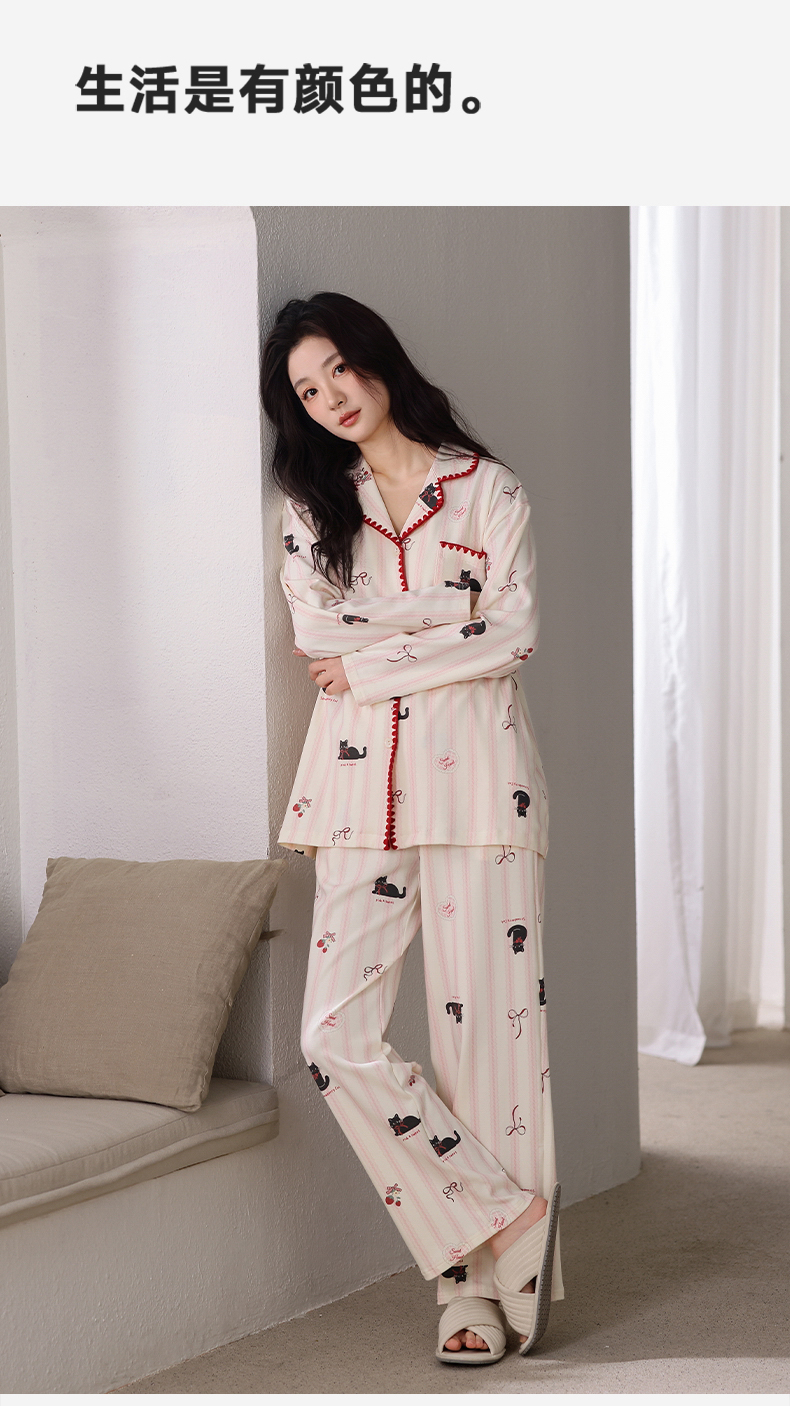 商品名称:洛兰沙家居馆 2026新款长袖睡衣女款纯棉春季印花开衫翻领家居服可外穿套装第一批 45141