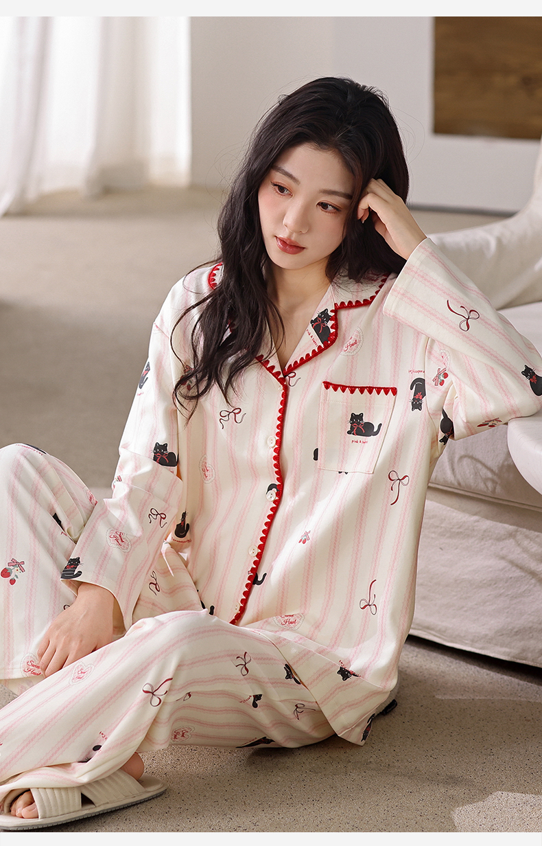 洛兰沙家居馆 2026新款长袖睡衣女款纯棉春季印花开衫翻领家居服可外穿套装第一批 45141