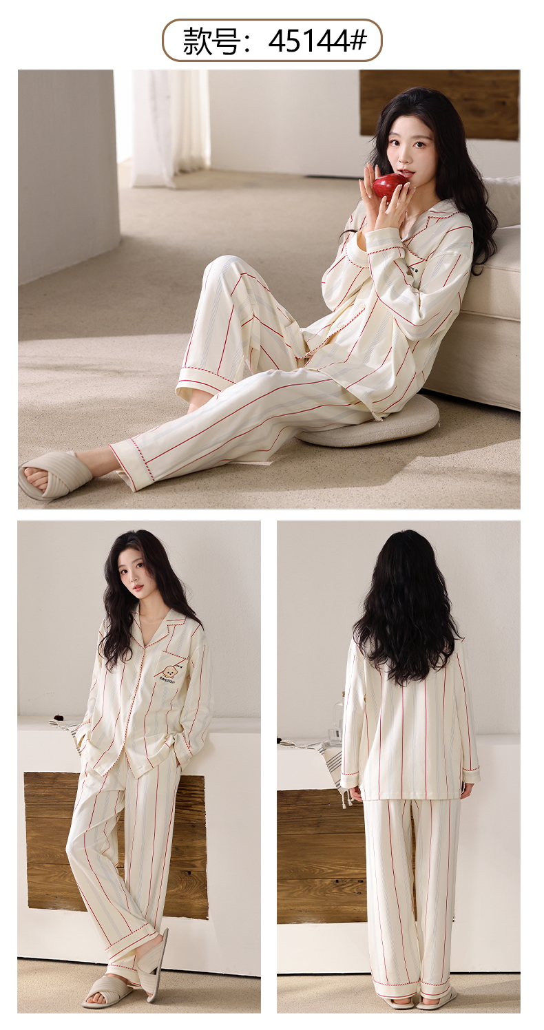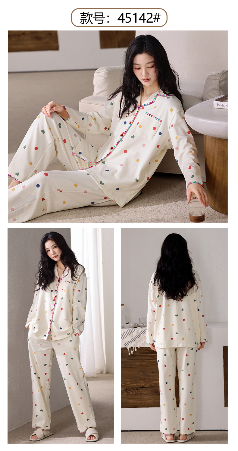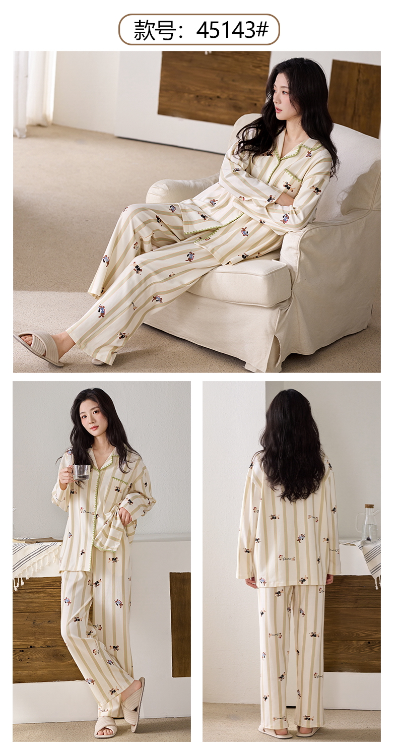 (总)洛兰沙家居馆 2026新款长袖睡衣女款纯棉春季印花开衫翻领家居服可外穿套装 第二批,45145,45146,45147