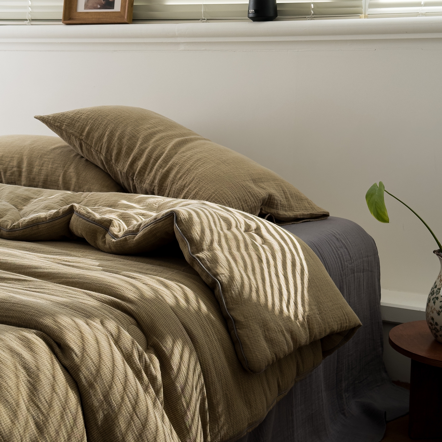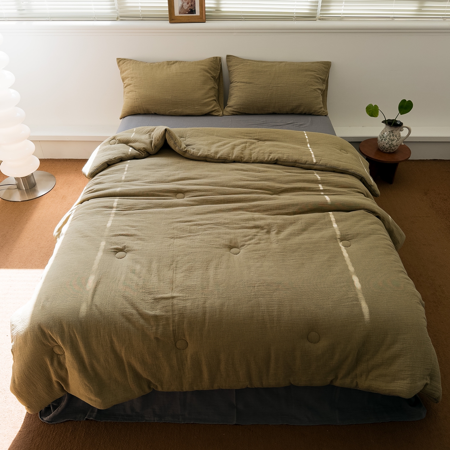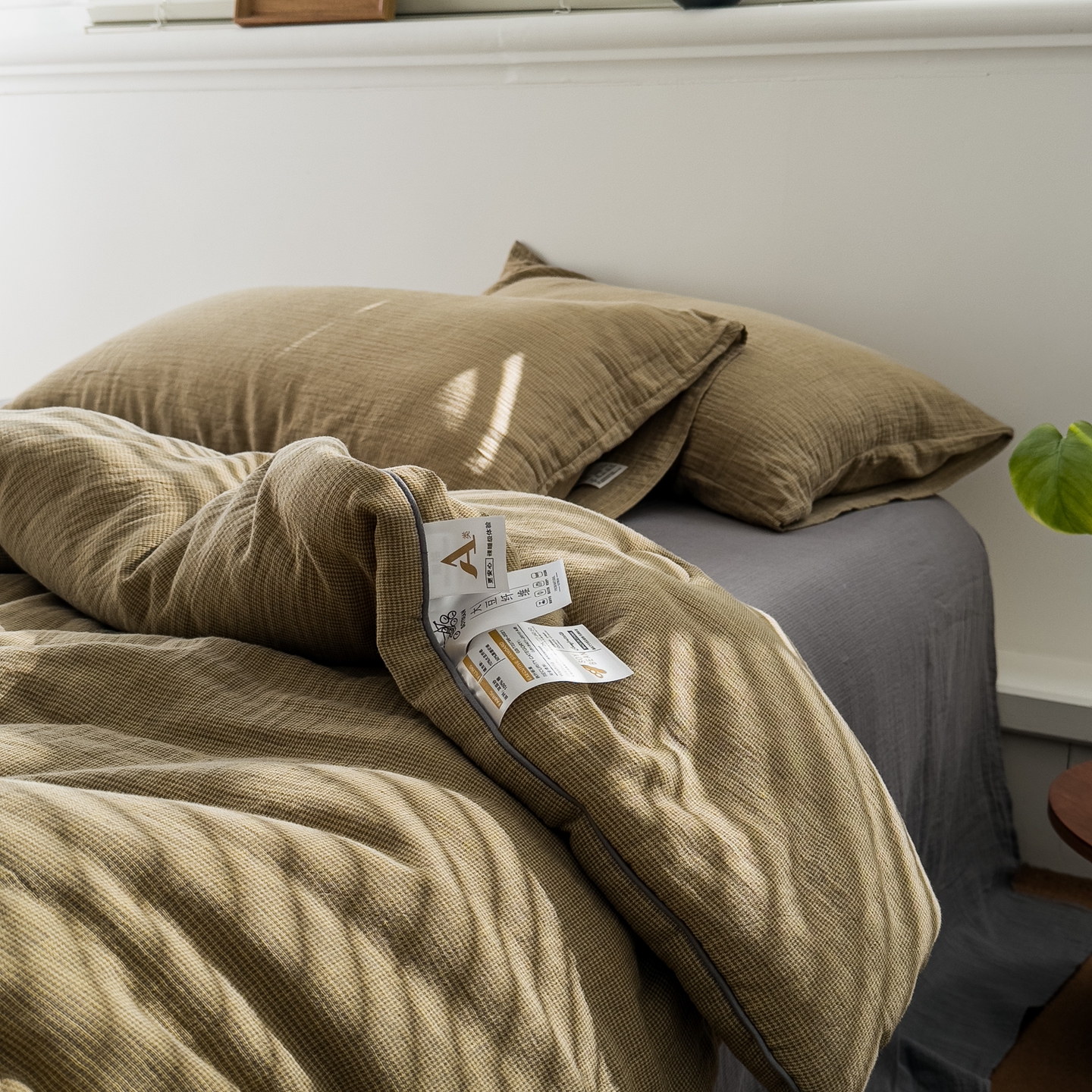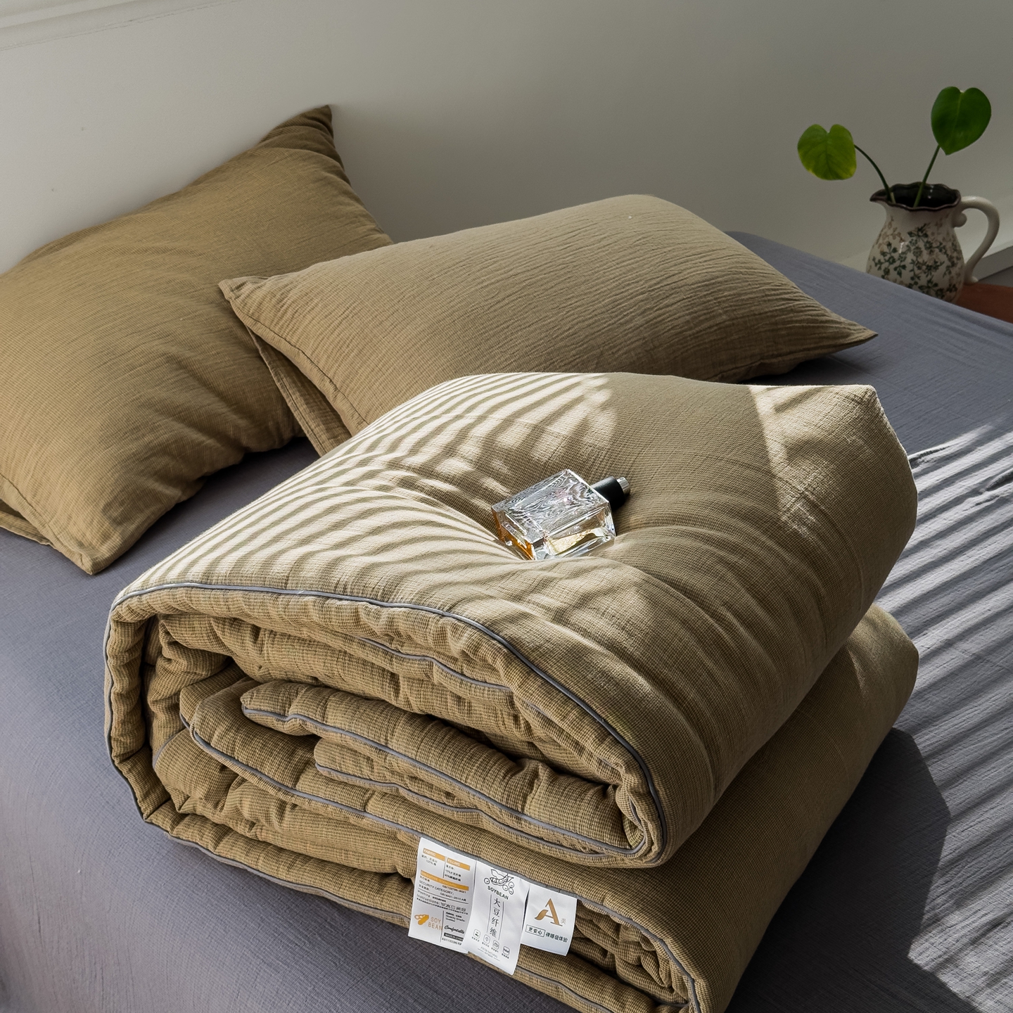 商品名称:仰望棉麻双层纱供应链 2025新款弥山AA版全棉色织提花双层纱春秋被冬被被子被芯 弥山-绿