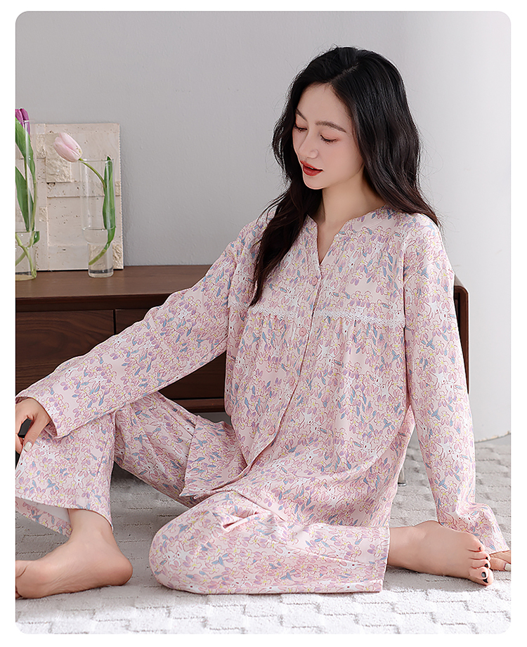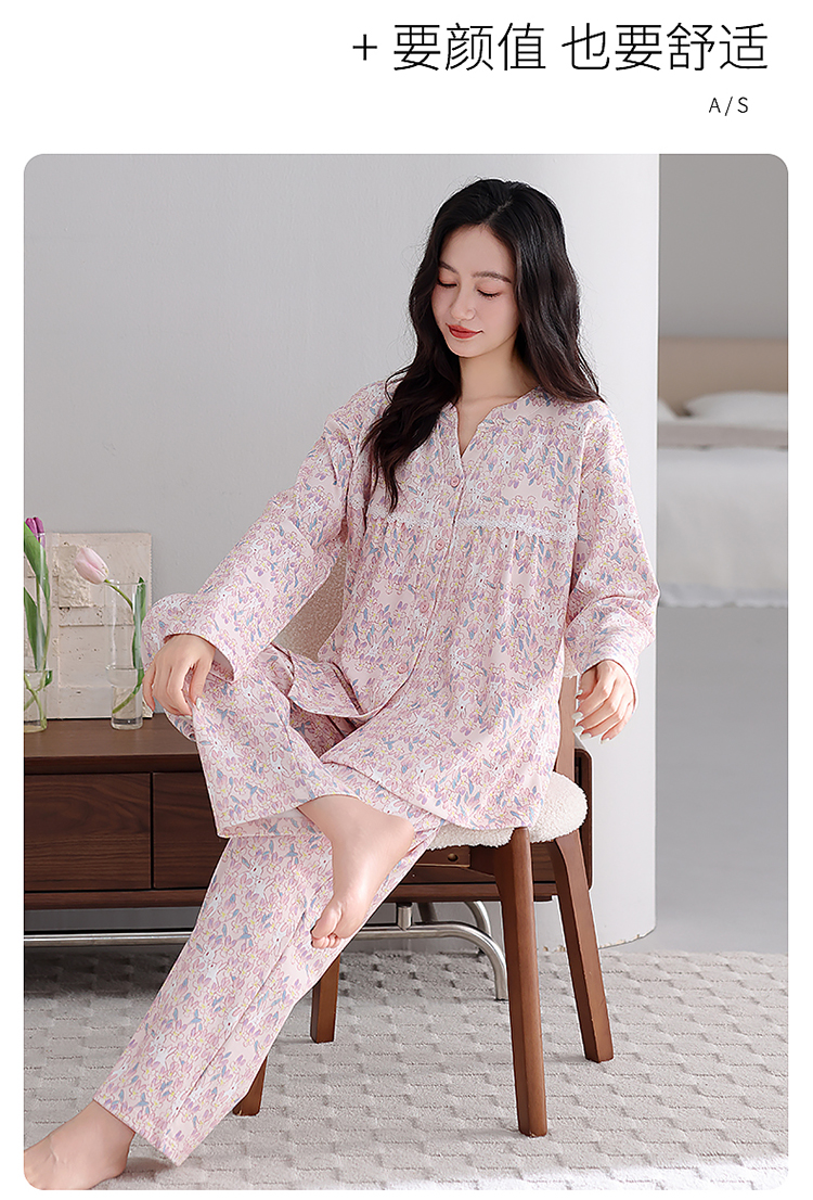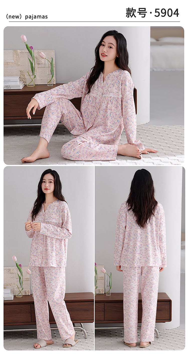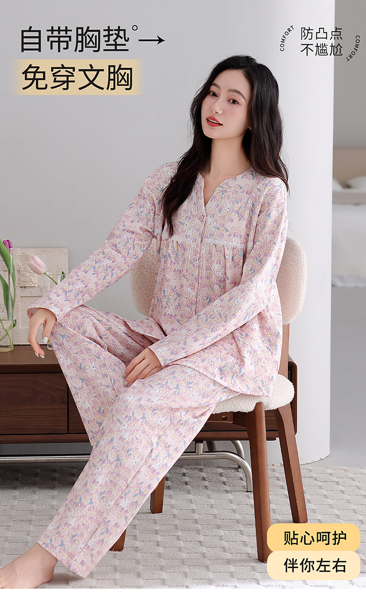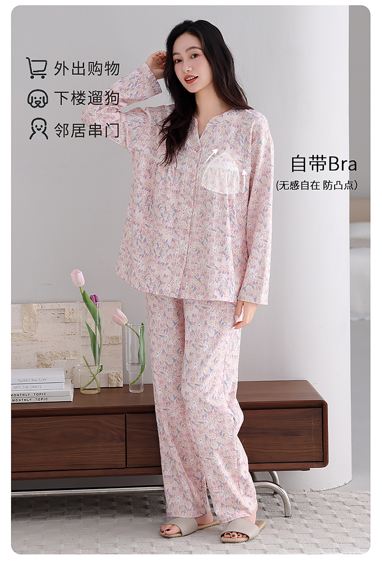 洛兰沙家居馆 2026新款秋冬睡衣女拉架棉带胸垫可外穿长袖长裤青中年女士家居服套装第12批 5904