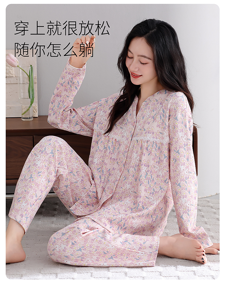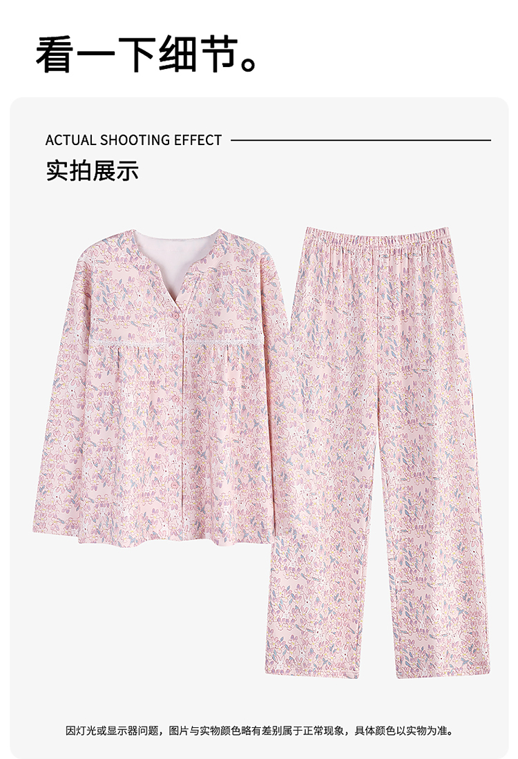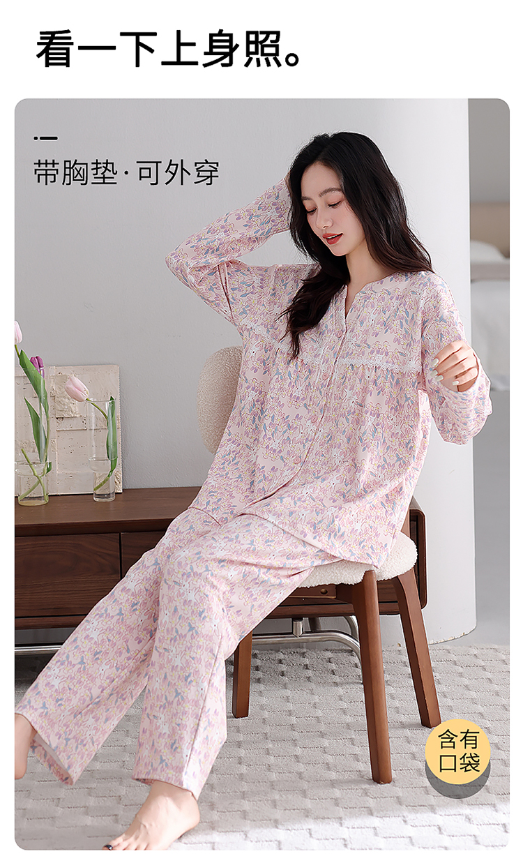 商品名称:洛兰沙家居馆 2026新款秋冬睡衣女拉架棉带胸垫可外穿长袖长裤青中年女士家居服套装第12批 5904