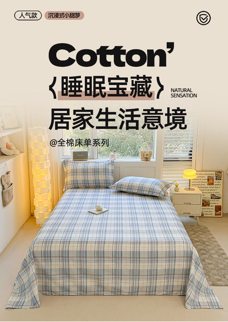 商品名称:名优家纺 2026新款13070全棉印花单床单 理想生活-灰