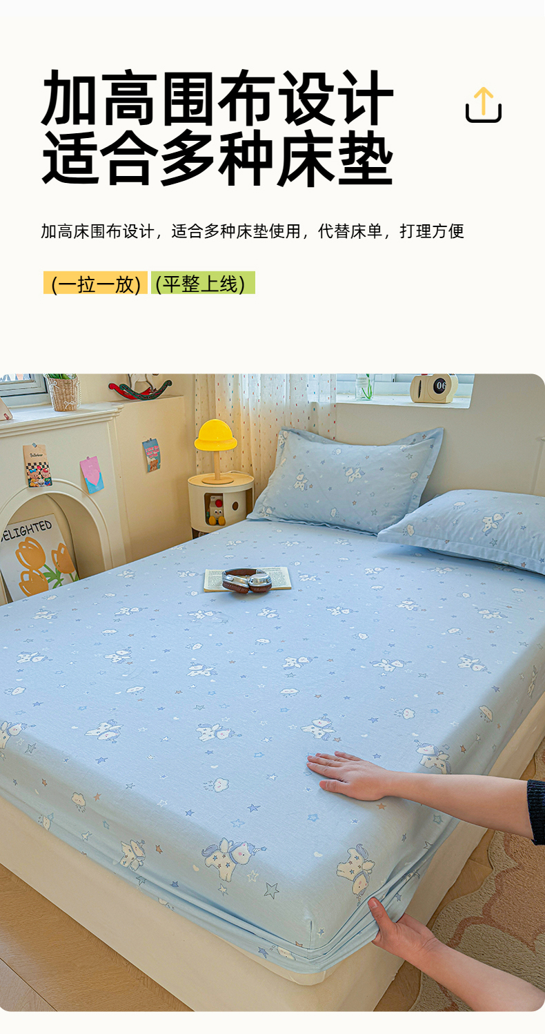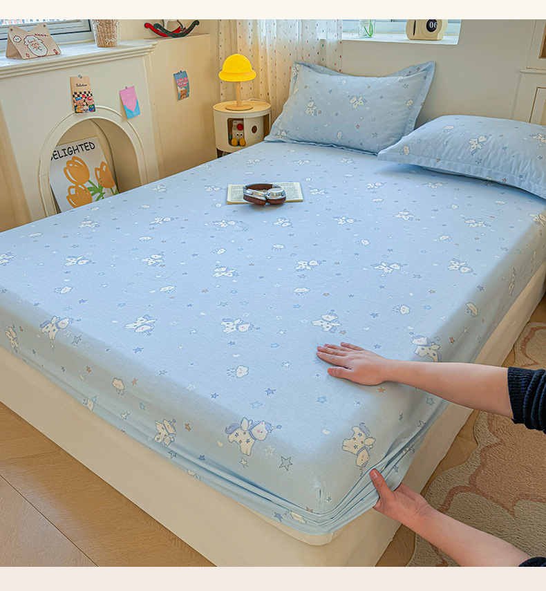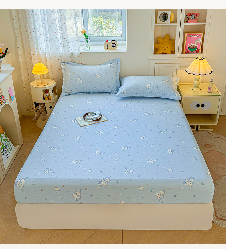 名优家纺 2026新款13070全棉印花单床笠 星星独角兽