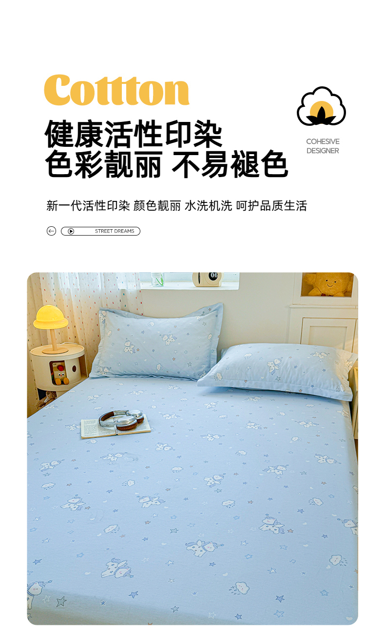 • 91家纺网 家纺一手货源 找家纺 名优家纺 2026新款13070全棉印花单床笠 星星独角兽