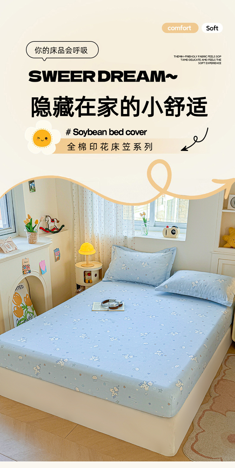 (总)名优家纺 2026新款13070全棉印花单床笠,调皮熊猫,抚香意叶,卡希亚,开心动物城,理想生活-灰,兔茶春序,晚风私语,小粉螺,星点兔语,星星独角兽,星语星愿,怡花
