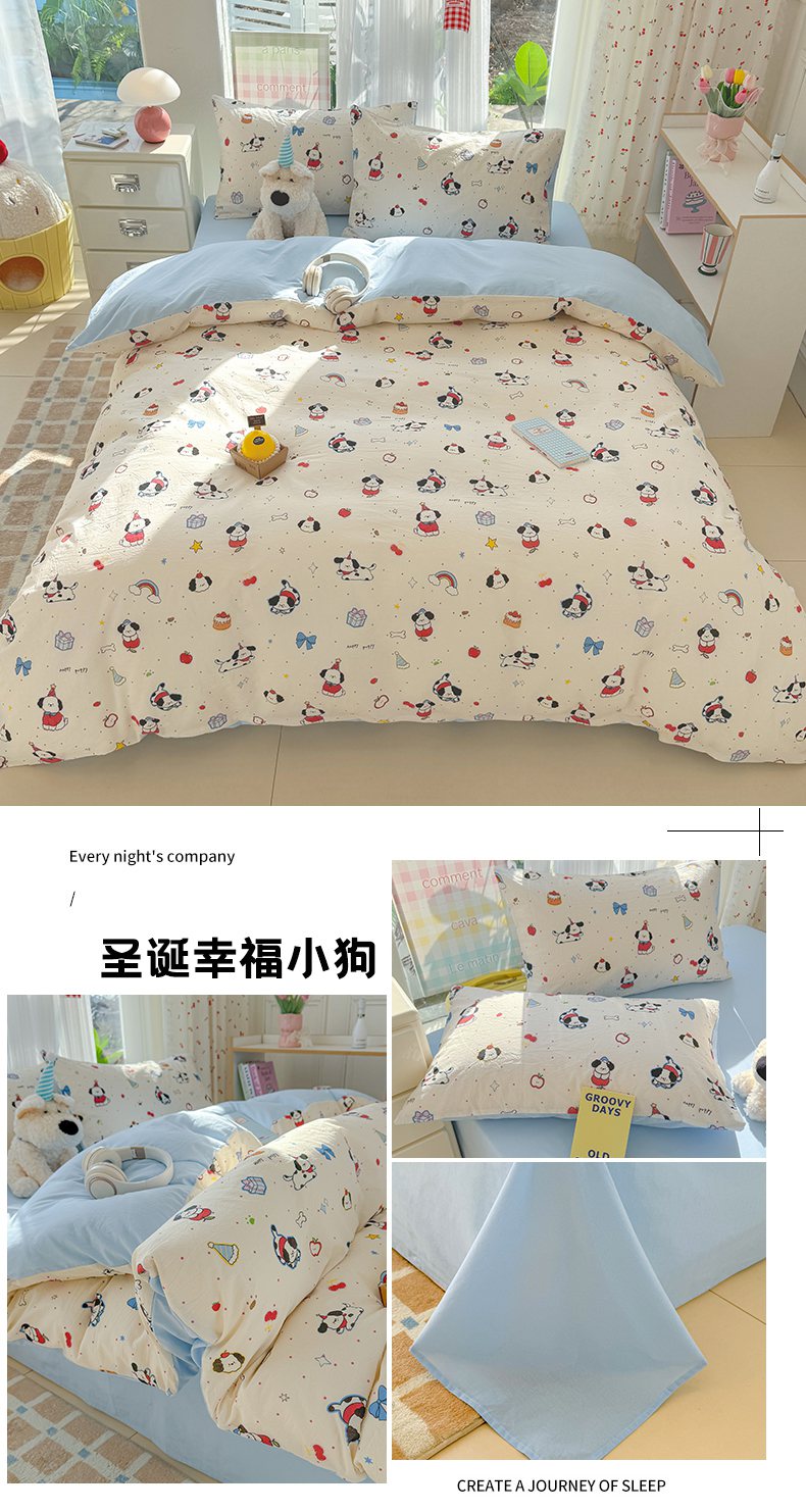 (总)颜选 2025新款绵柔水洗棉夏被四件套,贝利卡,饼干熊,波点,黑狗狗,蝴蝶结熊,花花狗,可可猫咪,铃铛狗