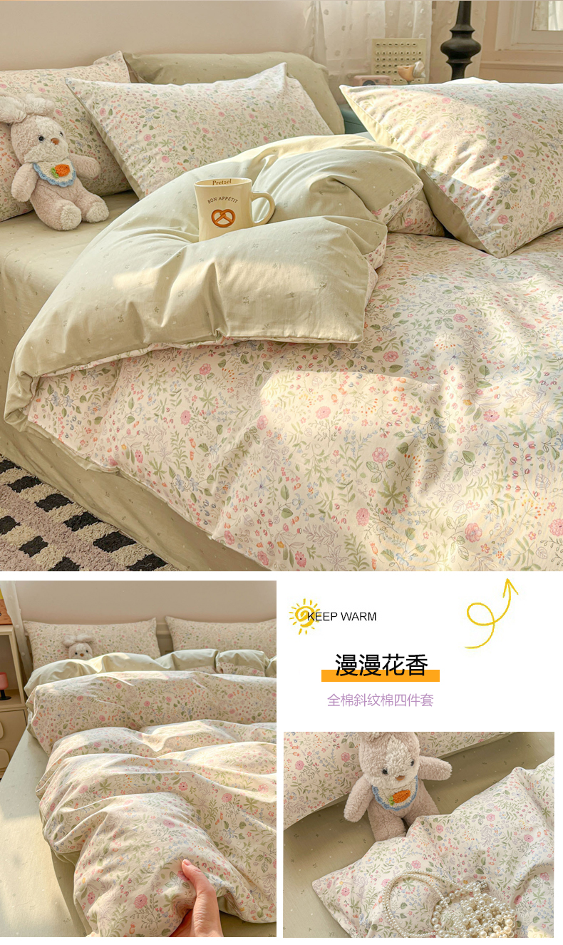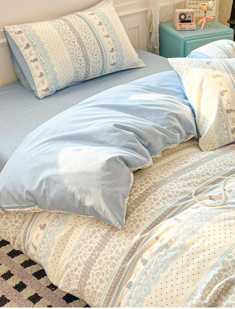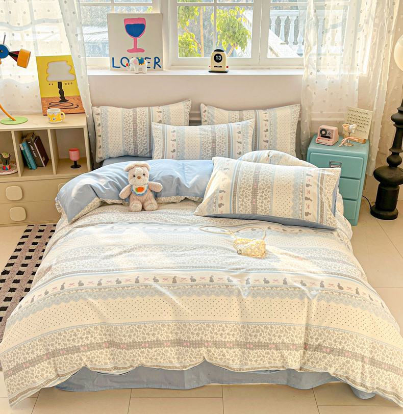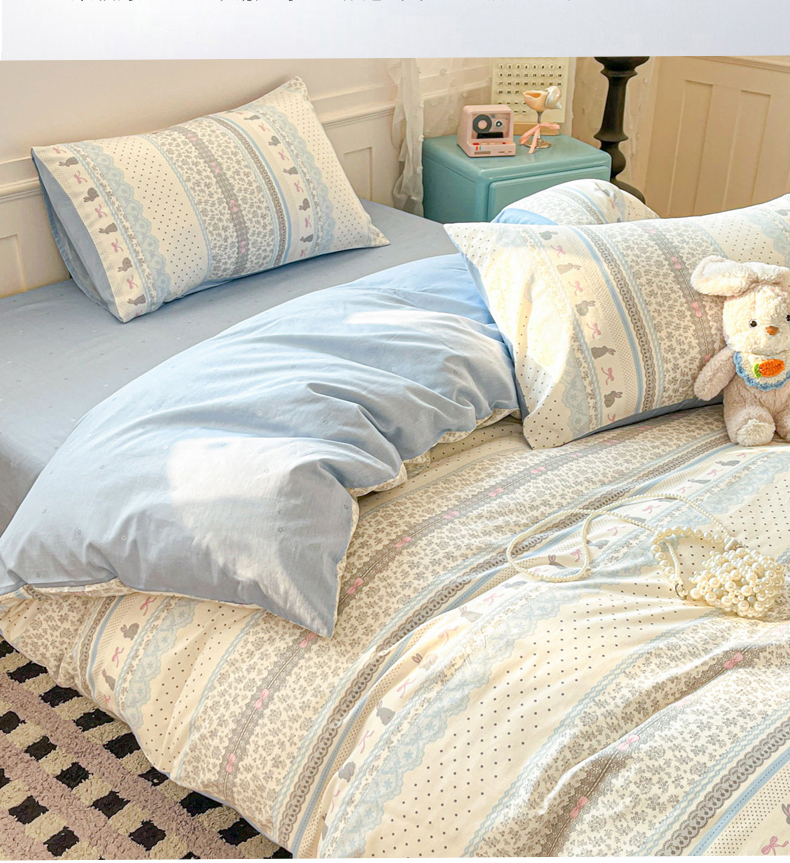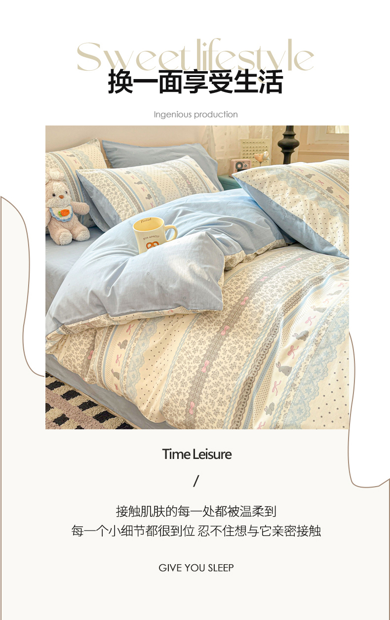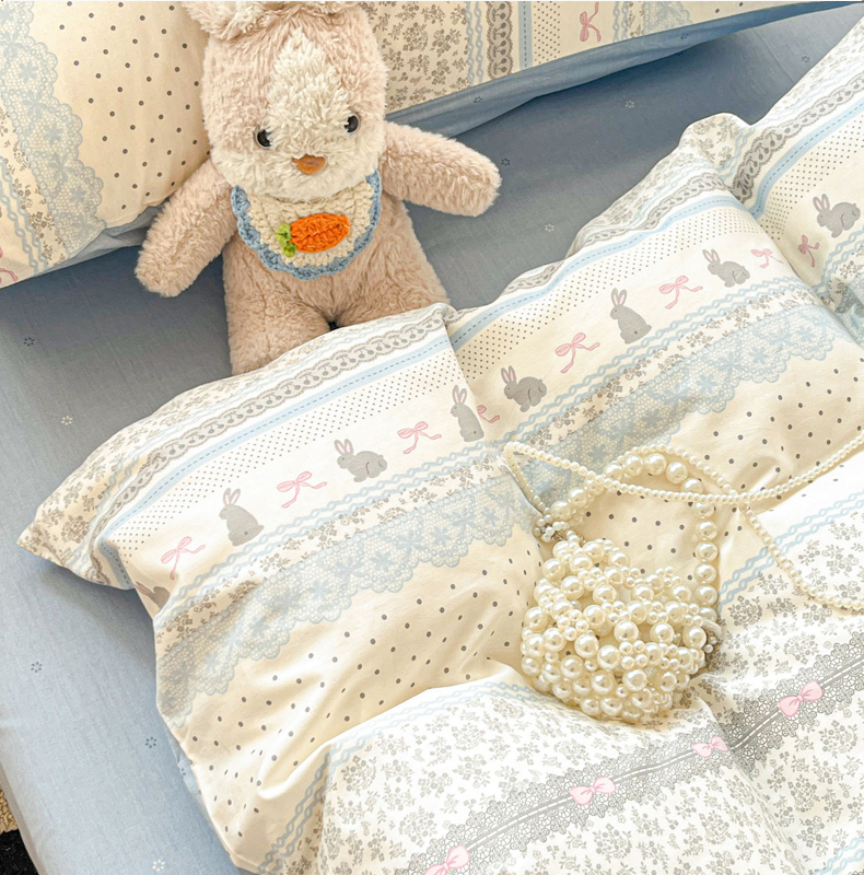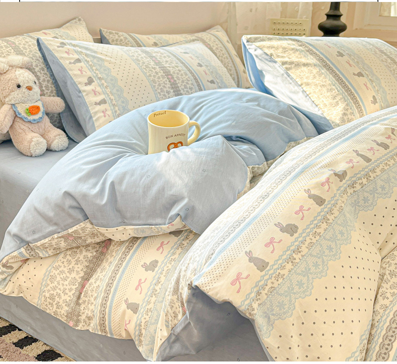 当前位置: 91家纺网 > 商品网购 > 床品套件 > 四件套 > 全棉普通四件套 > 麦伦家居 2026春夏新品13372全棉卡通小清新四件套 蕾丝小兔