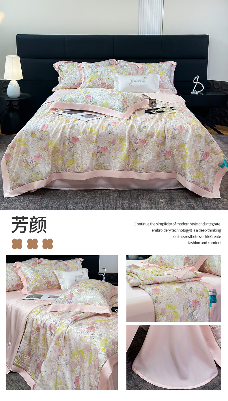 朵希曼 2026新款50天丝镂空夏被四件套系列(控价:夏被四件套券后不低于299元)(小号控价不低于149 标准单夏被控价169,加大单夏被控价189) 花间春晓-粉