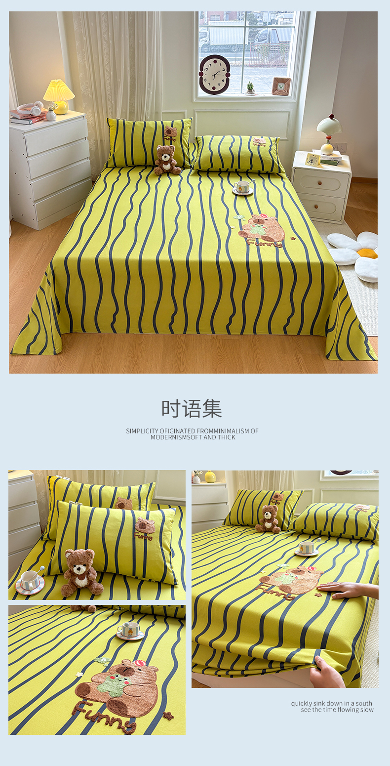 居眠 2026新款全棉磨毛毛巾绣床单 时语集-床单