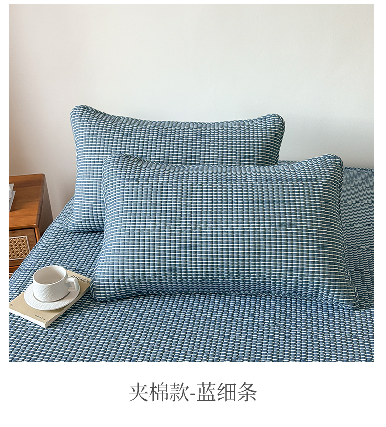 商品名称:居眠 2026新款全棉色织水洗棉格子夹棉棉花枕套 夹棉款-蓝细条