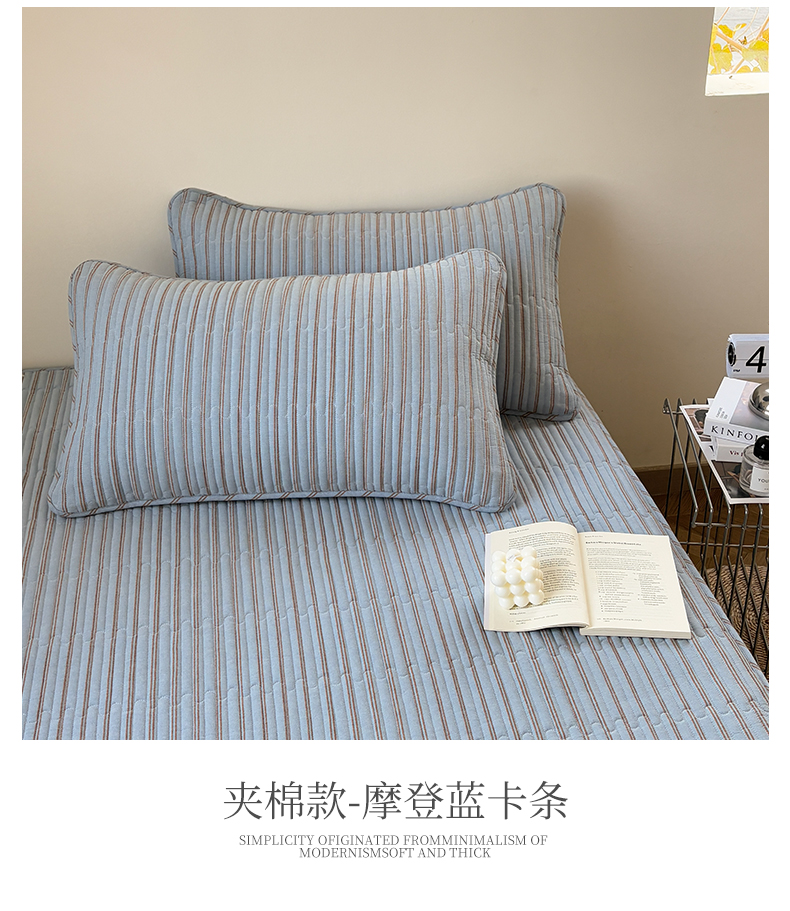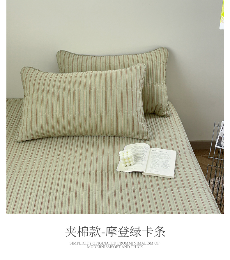 (总)居眠 2026新款全棉色织水洗棉格子夹棉棉花床笠,夹棉款-摩登蓝卡条,夹棉款-摩登绿卡条