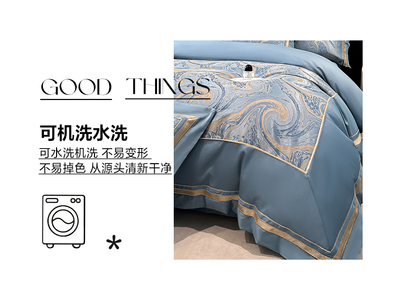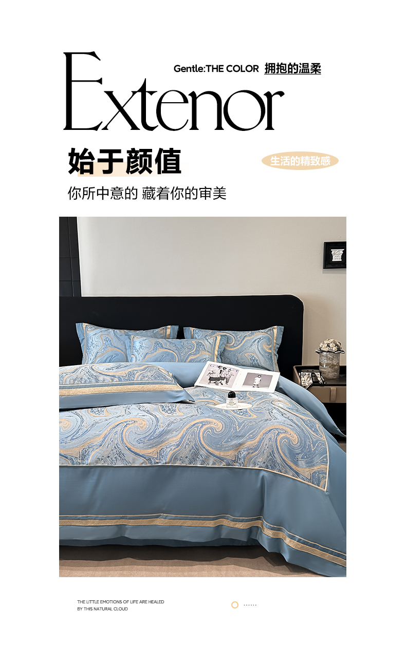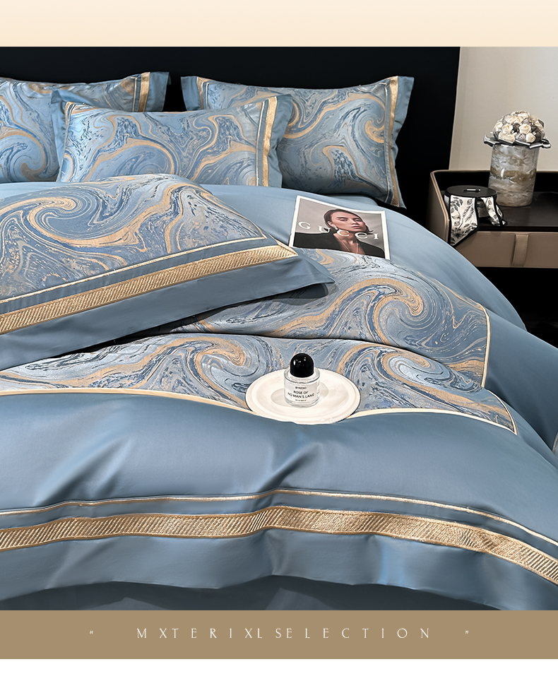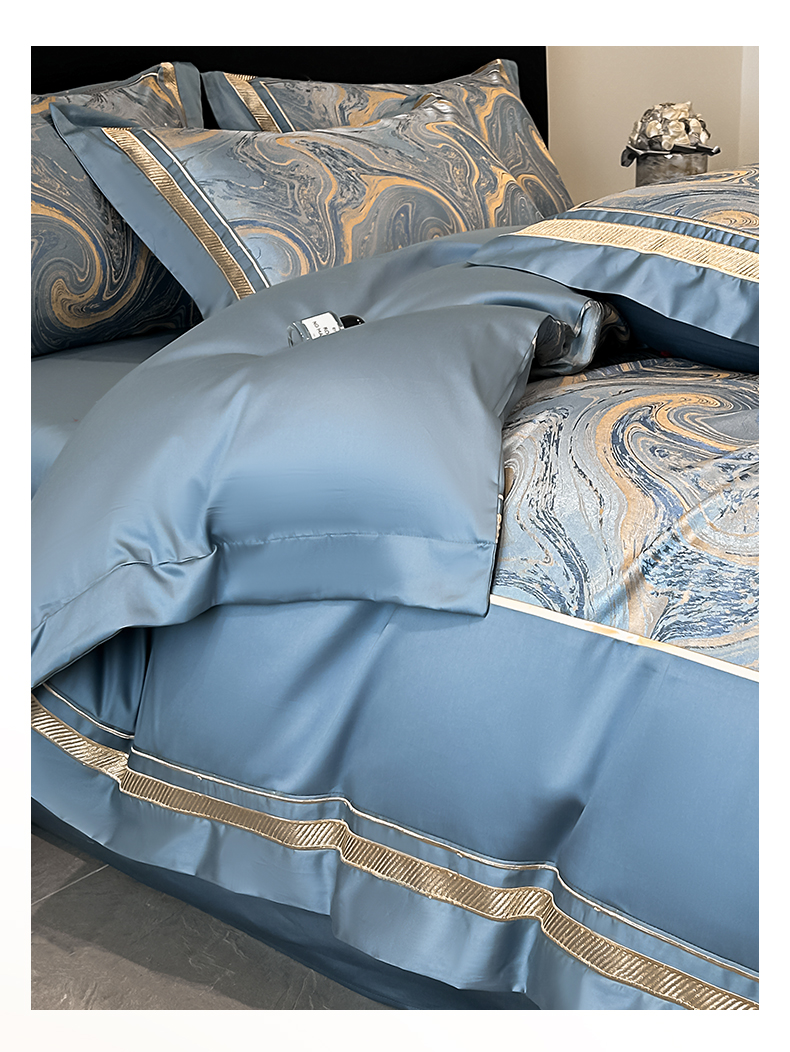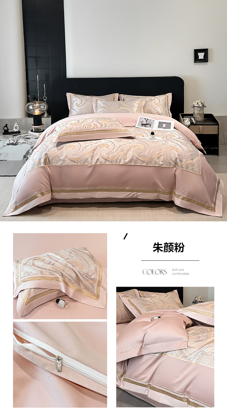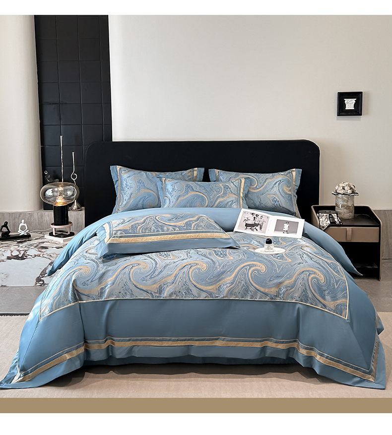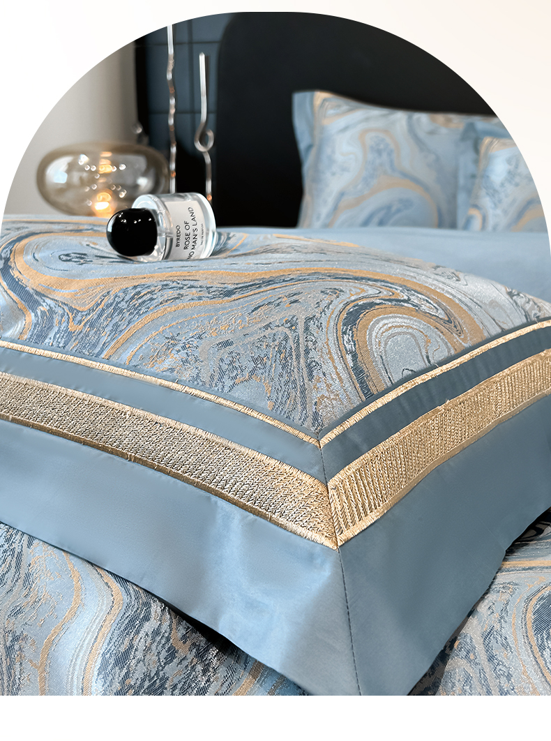 (总)博纳家纺 2025新款镂空大宽边拼角高级简奢款亲肤棉四件套-山水提花,繁星蓝,粉玉,高级灰,香槟,象牙白
