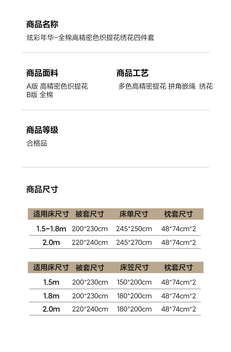 商品名称:(总)博纳家纺 2026春夏新款全棉纯棉高精密色织提花绣花四件套-炫彩年华