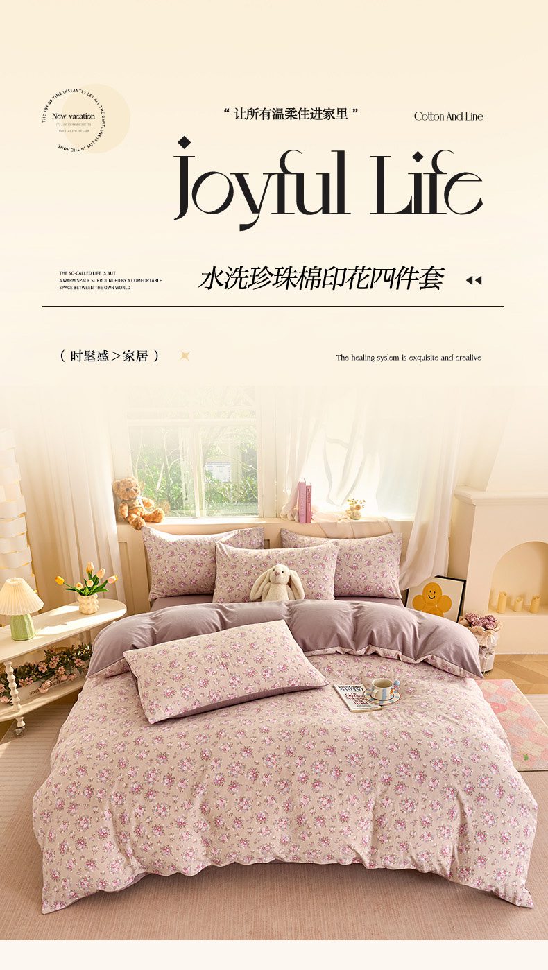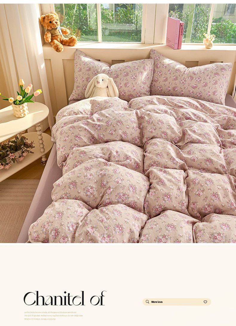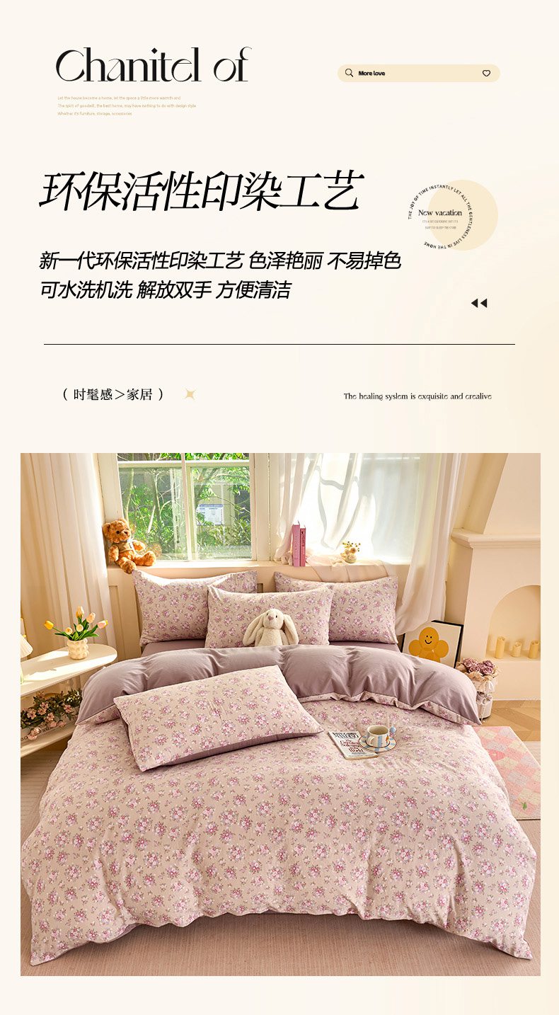 当前位置: 91家纺网 > 商品网购 > 床品套件 > 四件套 > 水洗棉四件套 > 卢赛尔 2026新款古法水洗仿棉云感棉学生三件套四件套 蔷薇-粉