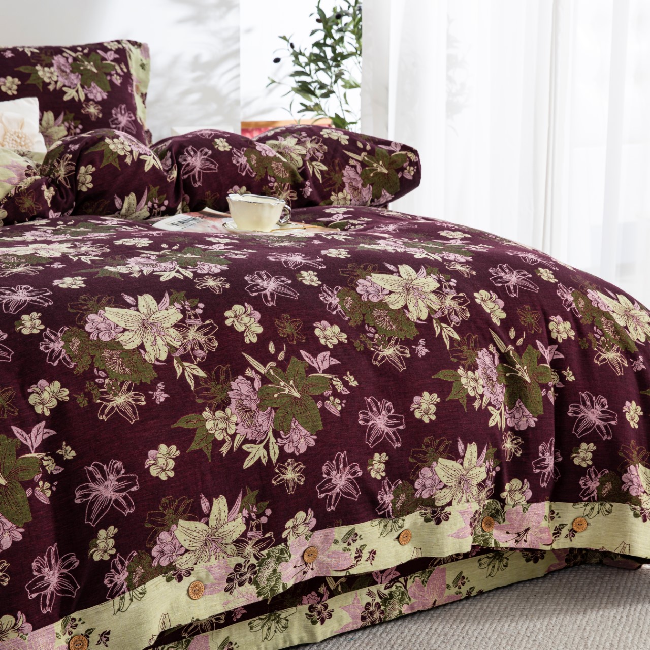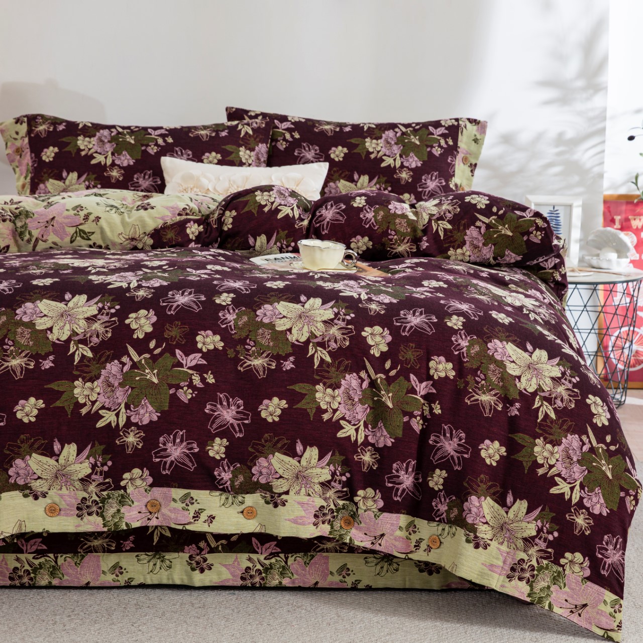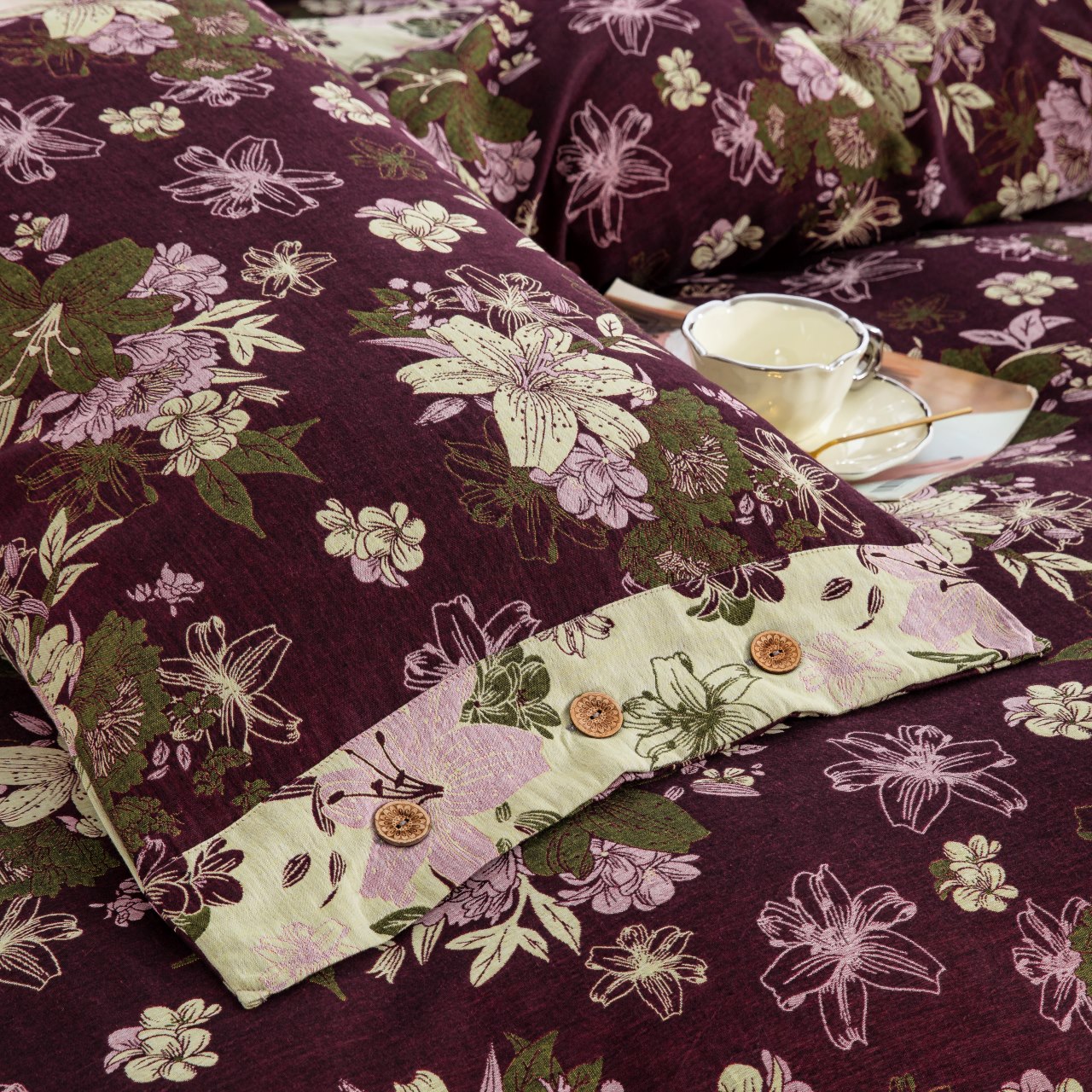 (总)双层纱家居 2025新款全棉纯棉色织提花纽扣款四件套-百合颂