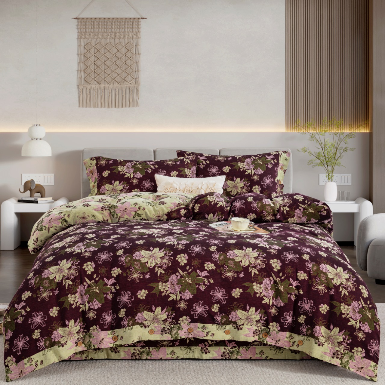 (总)双层纱家居 2024新款腊梅花系列四件套,梅醉春秋-粉,梅醉春秋-兰,梅醉春秋-紫