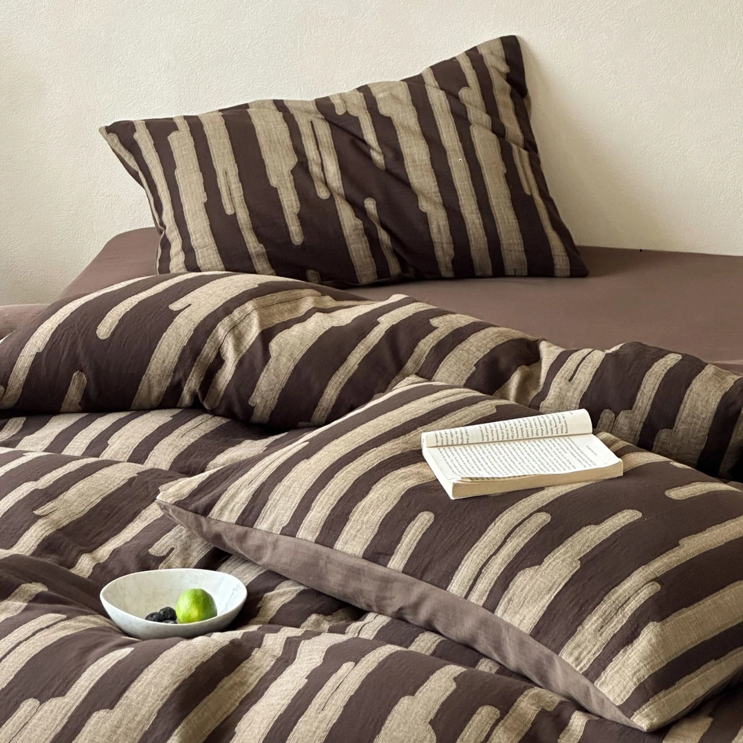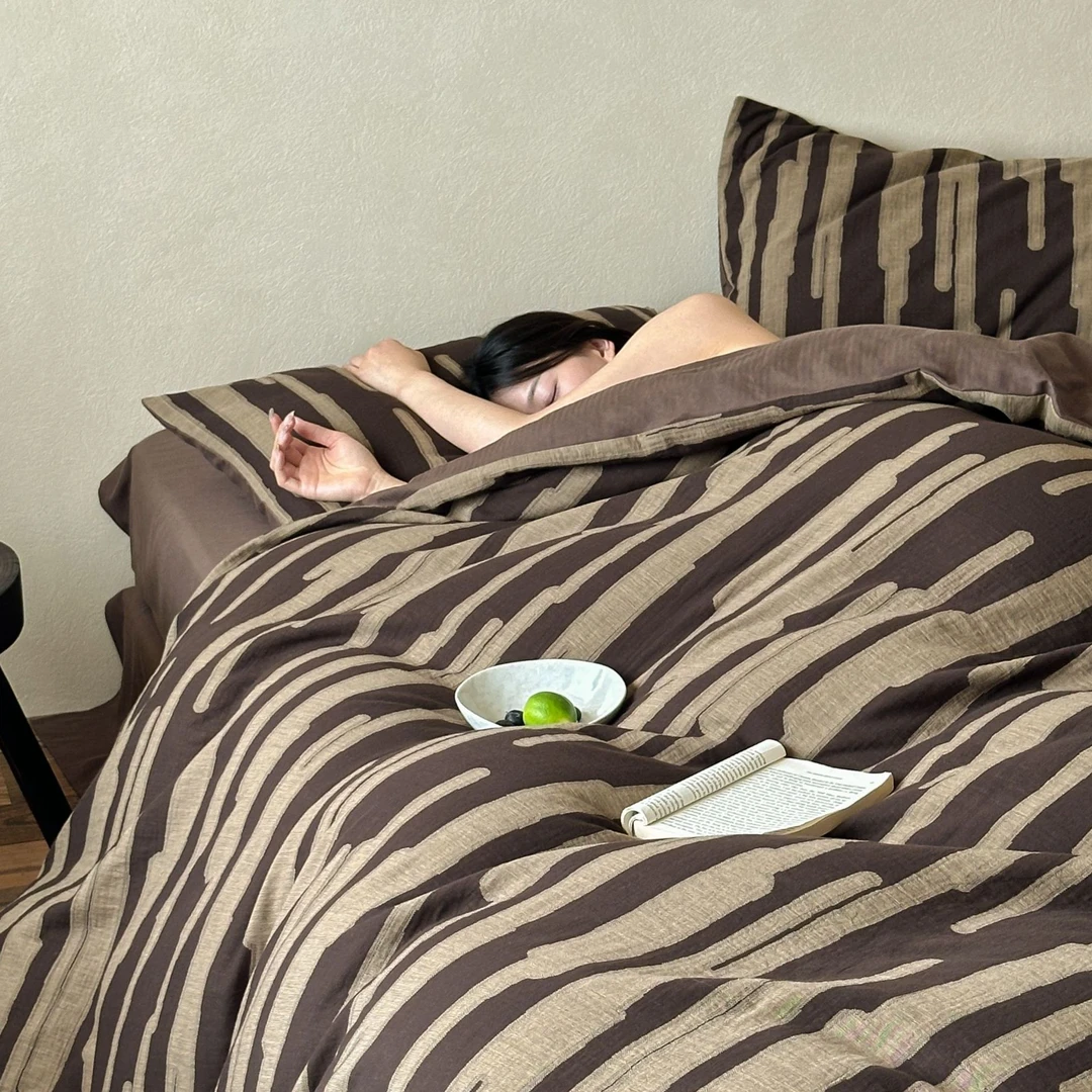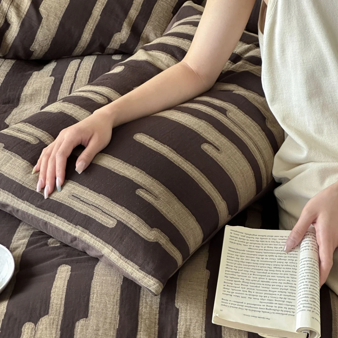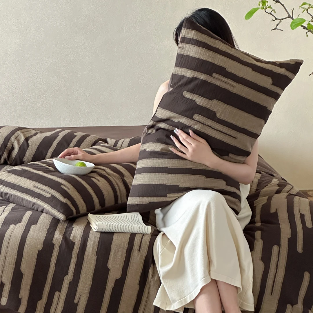 当前位置: 91家纺网 > 商品网购 > 床品套件 > 四件套 > 全棉普通四件套 > (总)双层纱家居 2025新款全棉纯棉色织提花双层纱四件套
