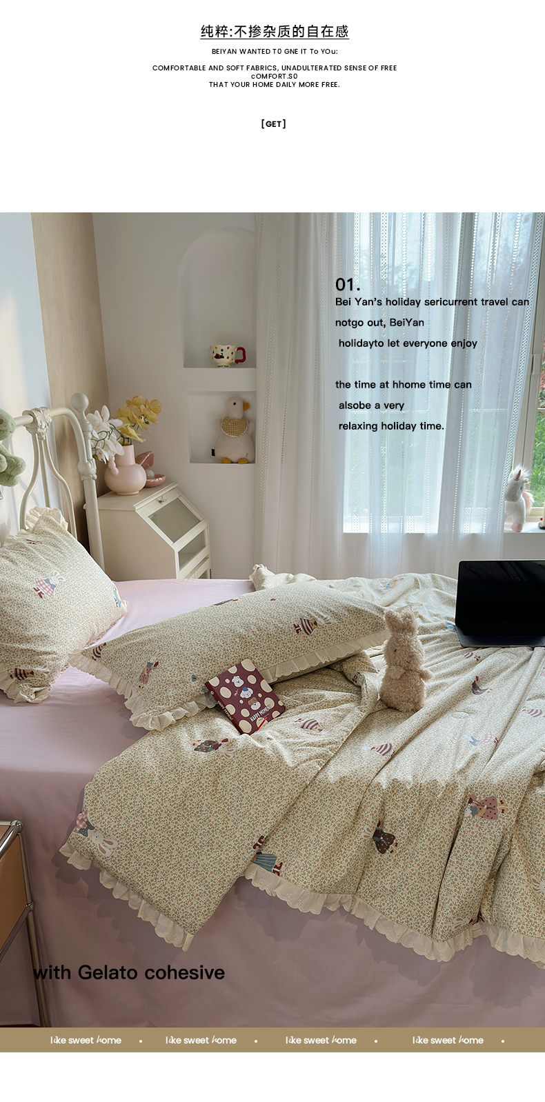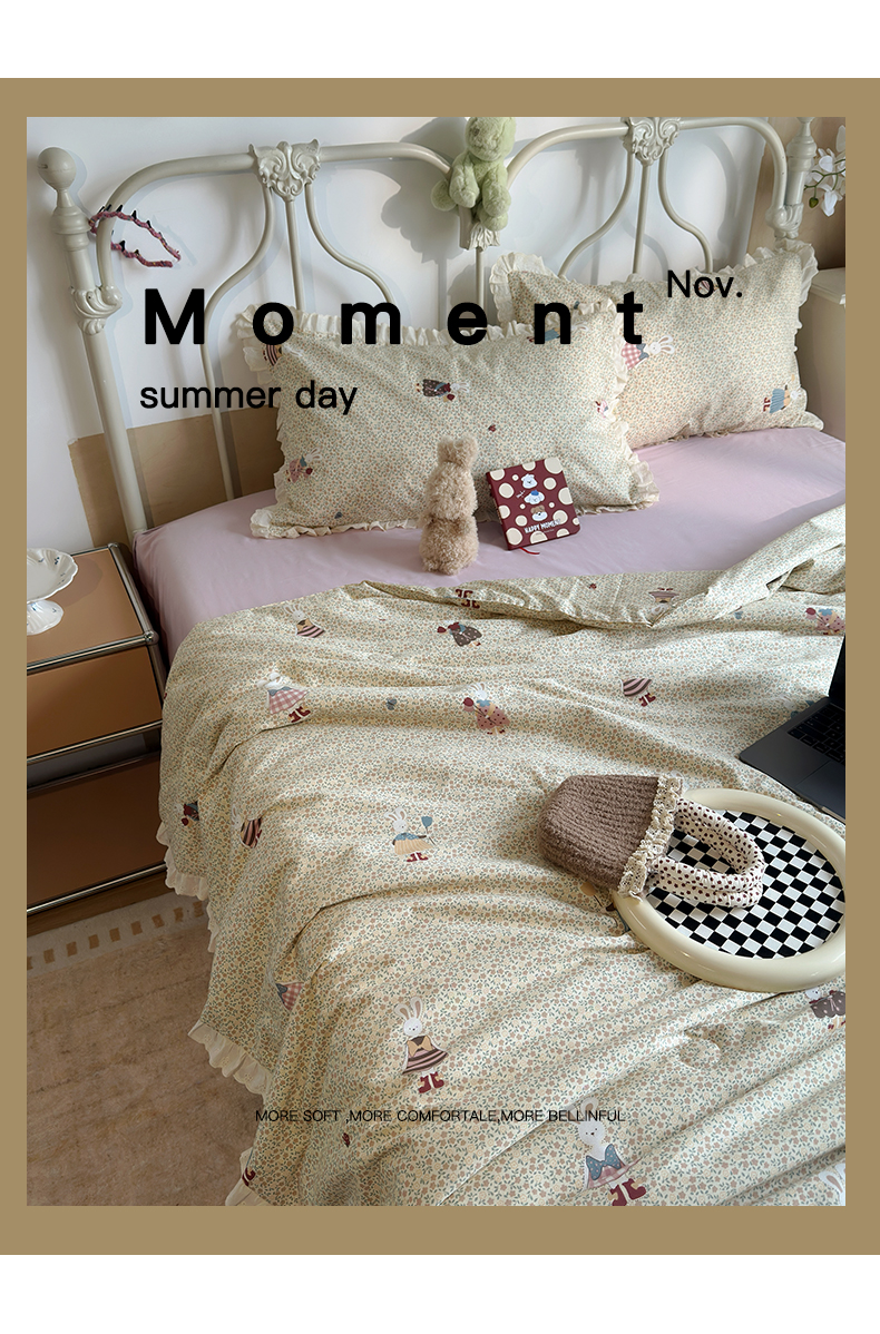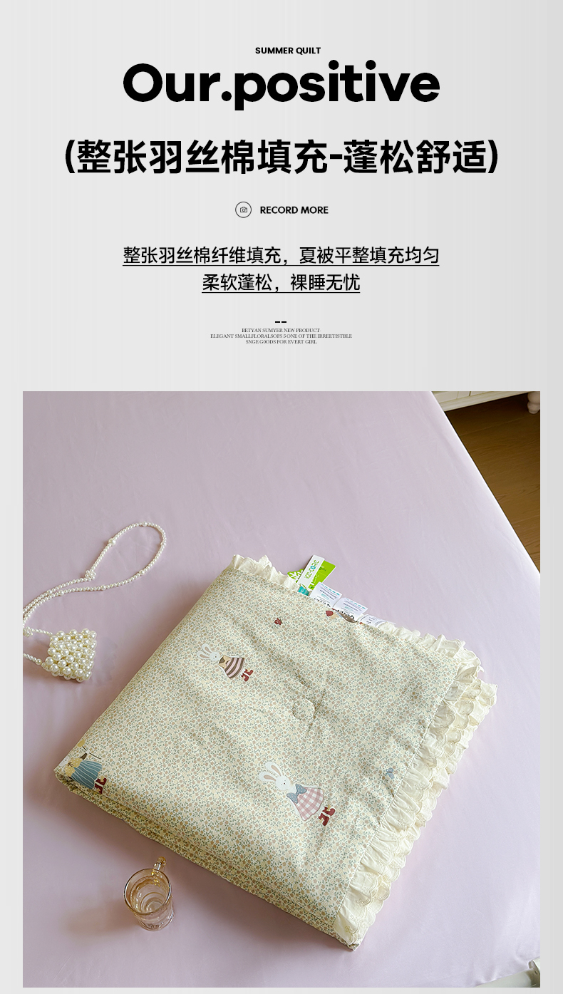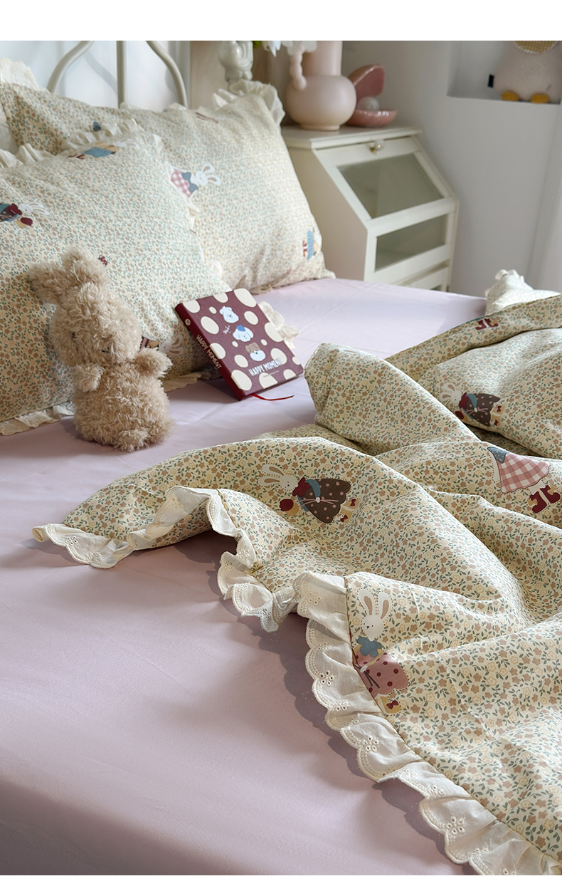 当前位置: 91家纺网 > 商品网购 > 床品套件 > 四件套 > 夏被四件套 > 绫韵家纺 2026新品夏季韩式浪漫小花边空调被夏被薄被子套件系列 百丽兔
