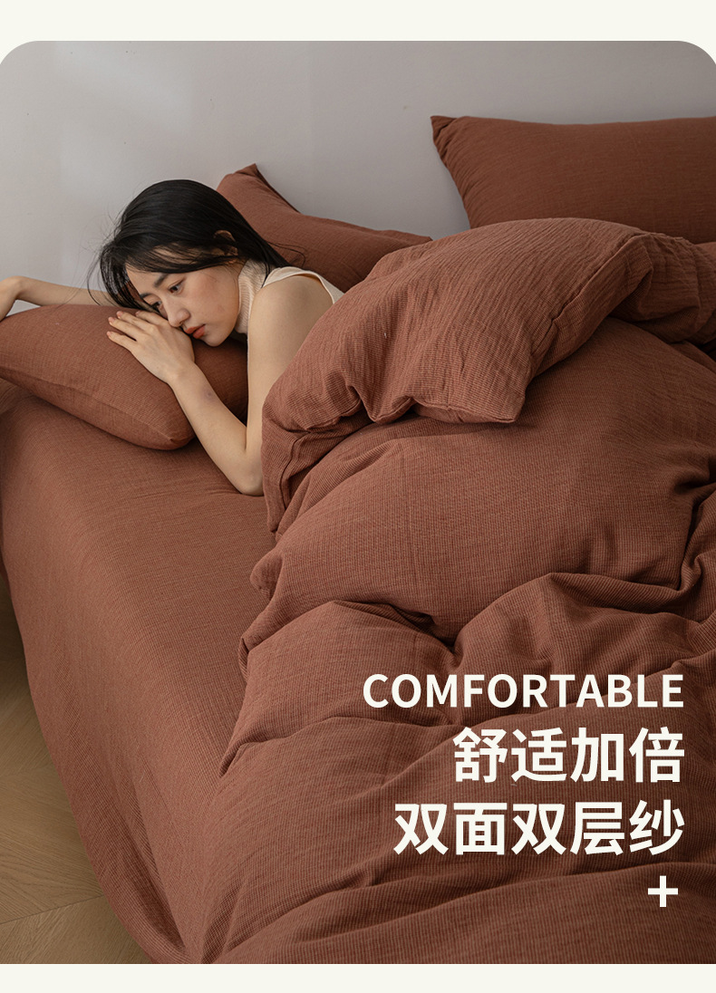 当前位置: 91家纺网 > 商品网购 > 床品套件 > 四件套 > 全棉普通四件套 > 双层纱家居 2025新款千鸟格全棉纯棉色织双层纱四件套 弥山粉