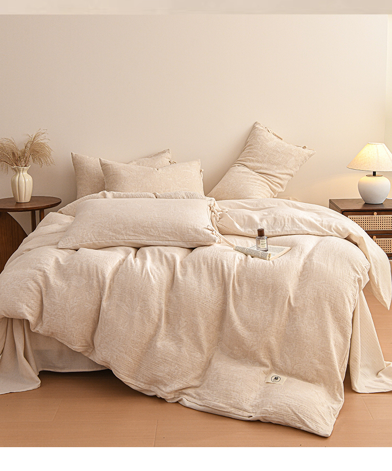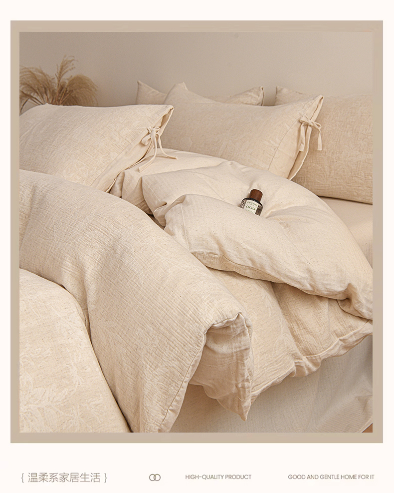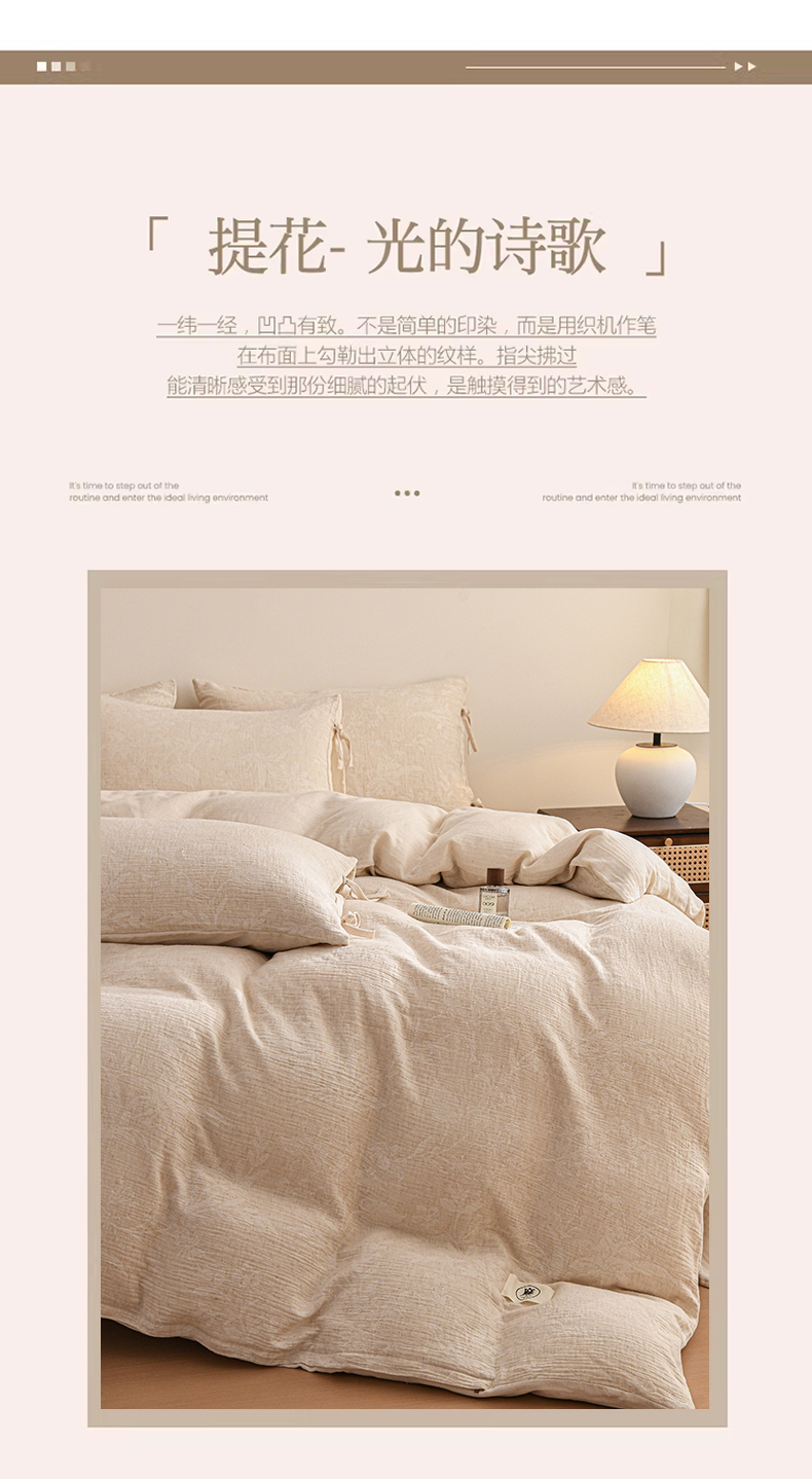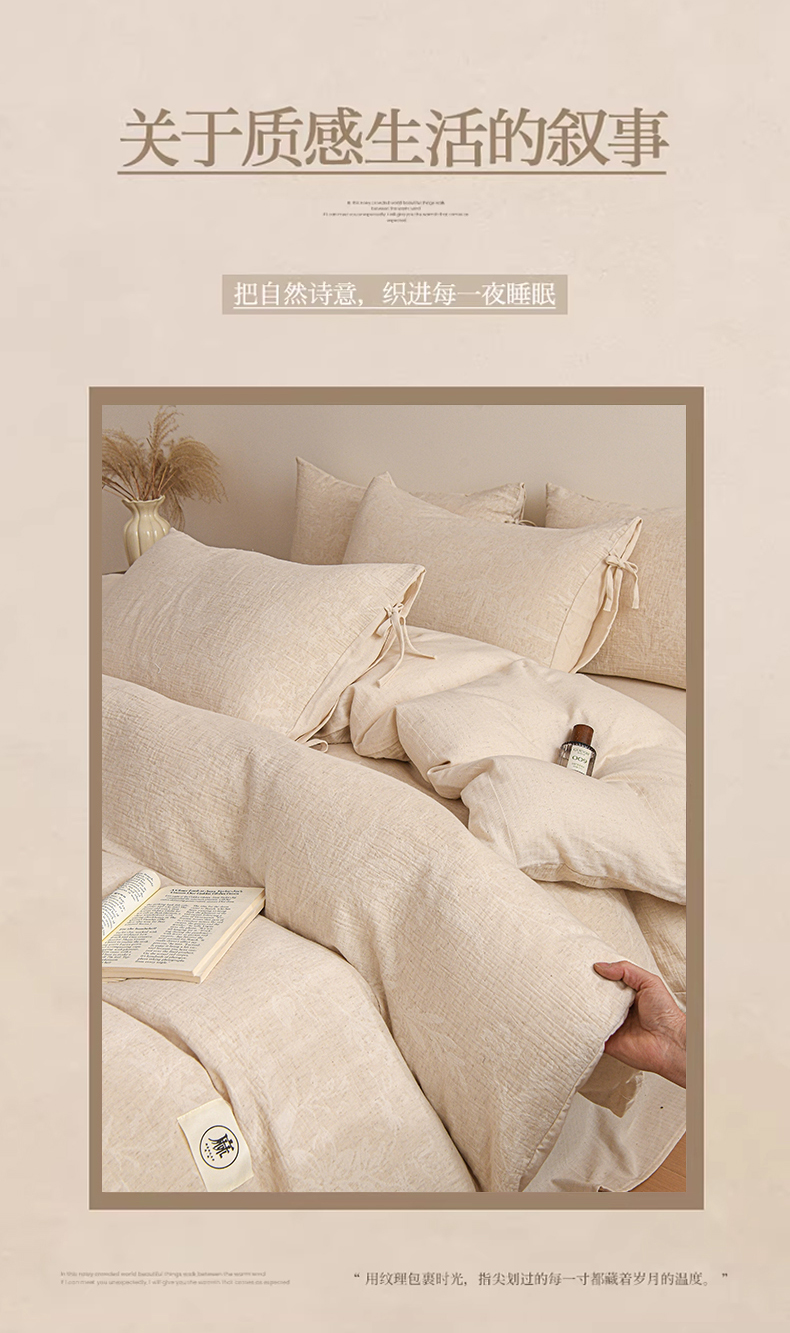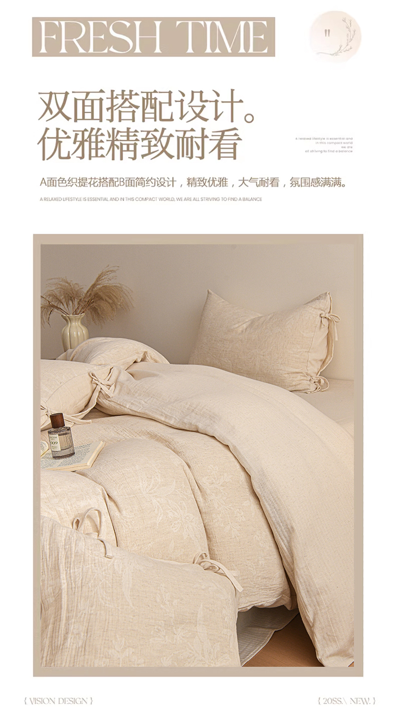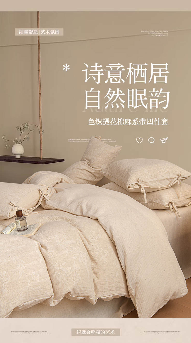 (总)KA家纺 2026春夏新款色织提花棉麻四件套花边款,繁花绵语,花影素帛