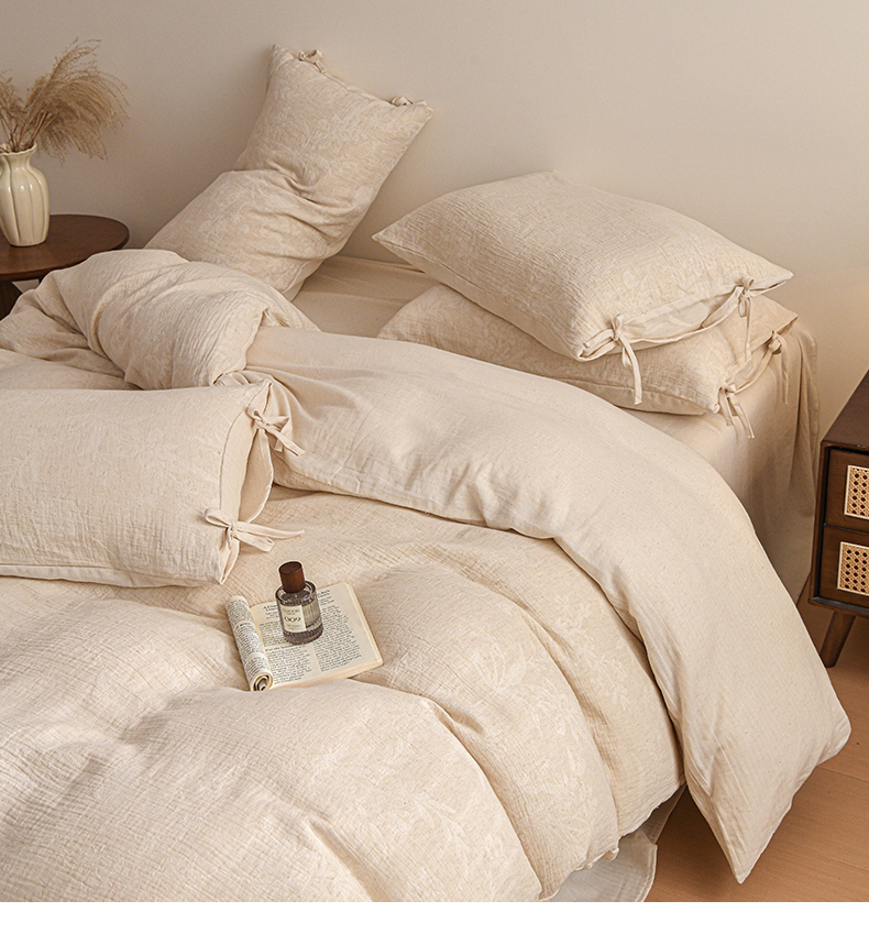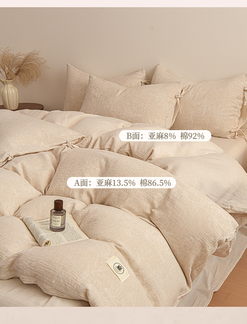 商品名称:KA家纺 2026春夏新品色织提花棉麻四件套 系带款 系带-风吟