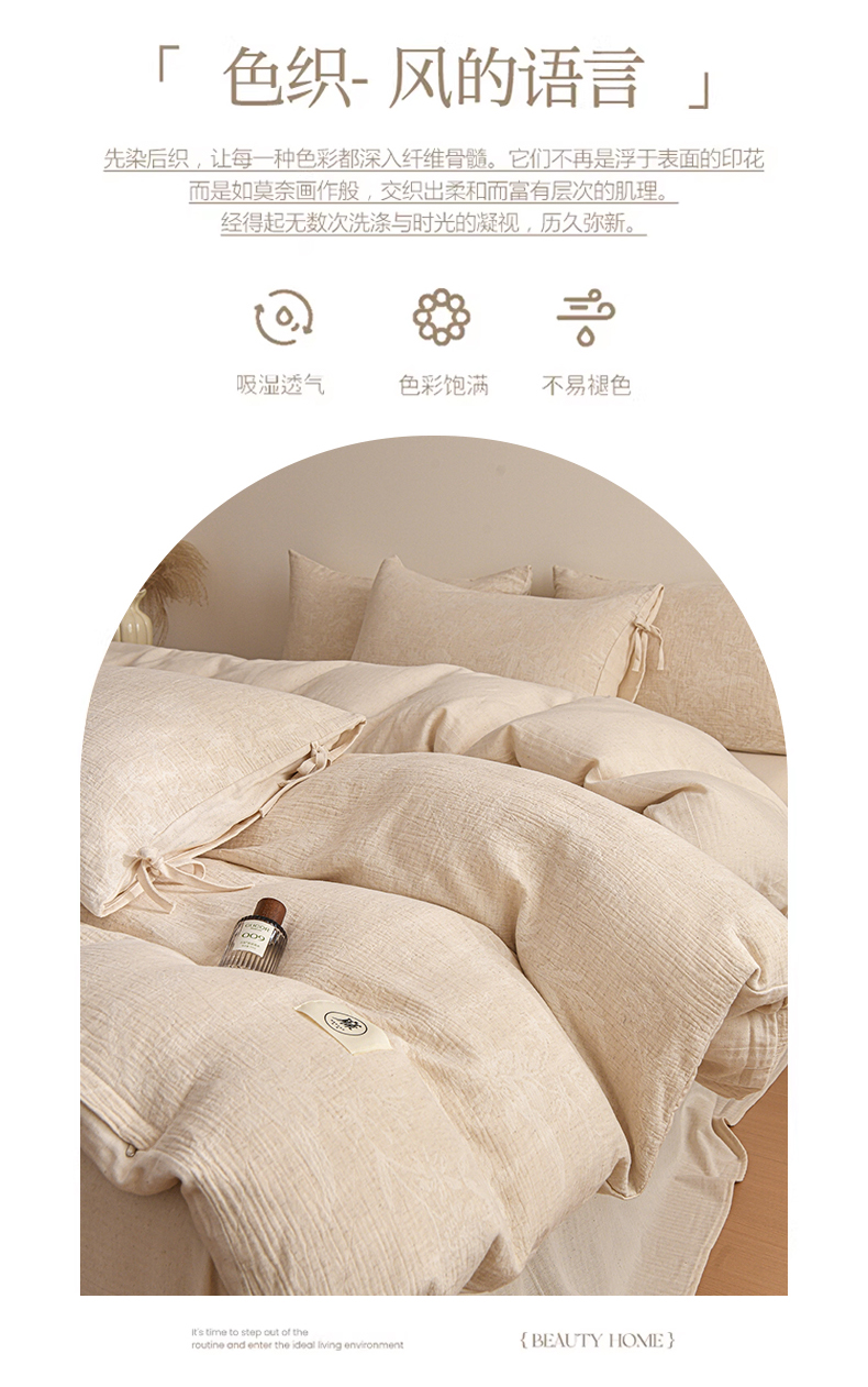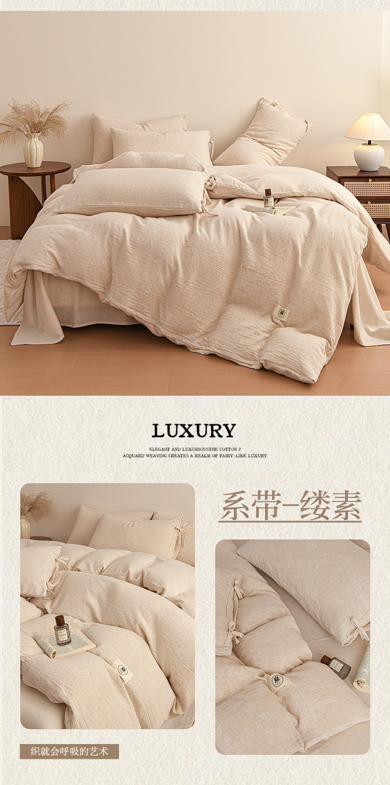 (总)KA家纺 2026春夏新品色织提花棉麻四件套 系带款,系带-风吟,系带-缕素