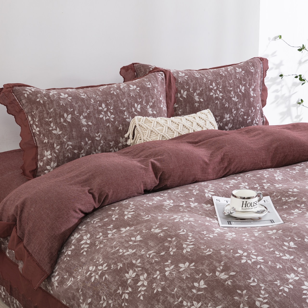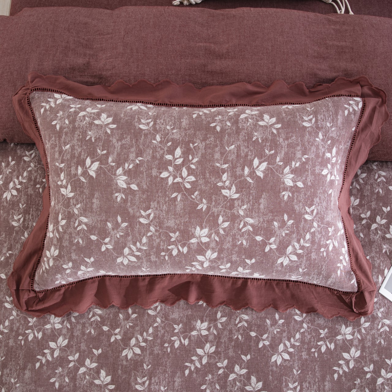 (总)双层纱家居 2026新款全棉纯棉色织提花拼角飞边款四件套-郁金花园正红,郁金花园正红