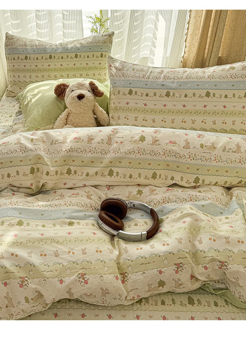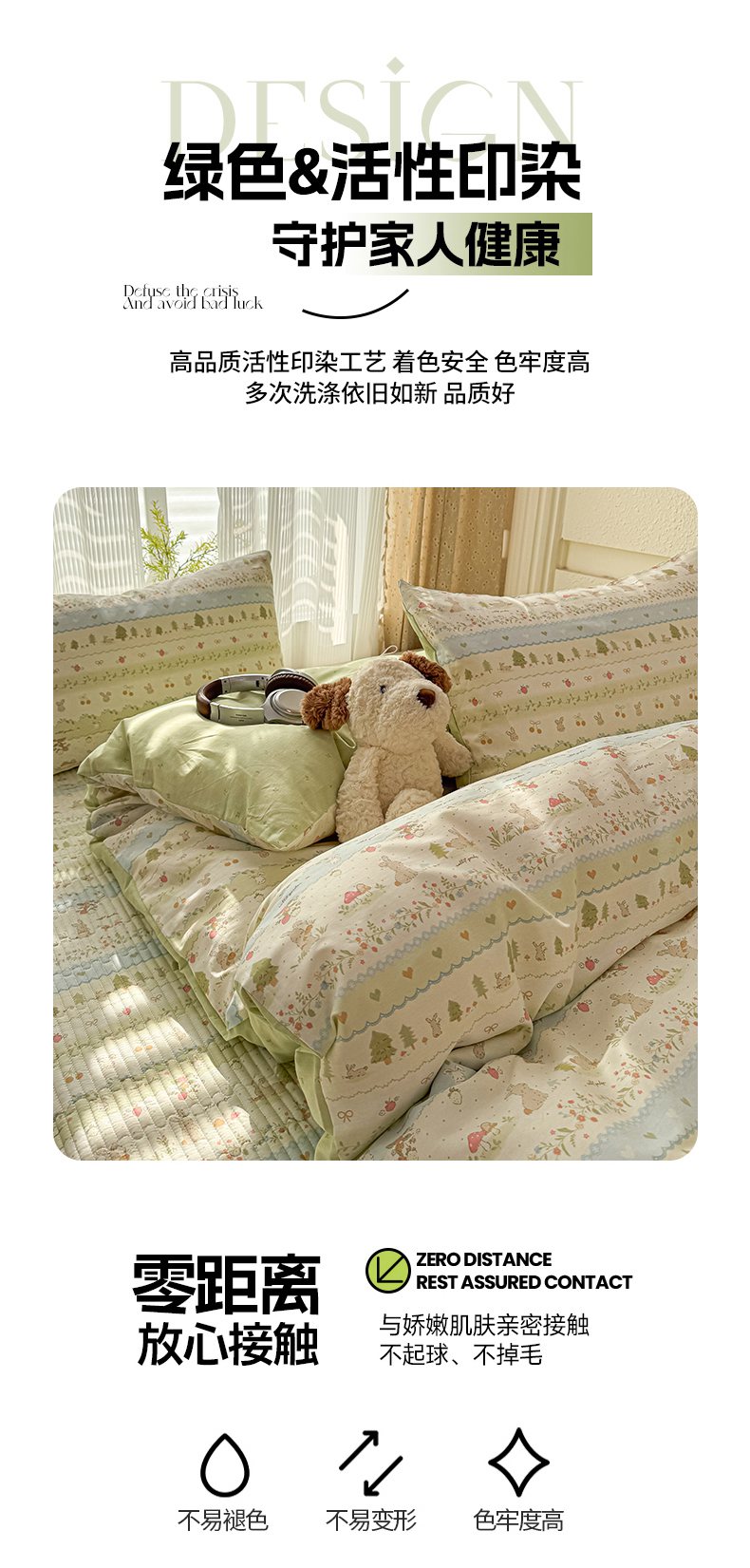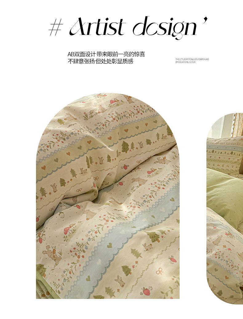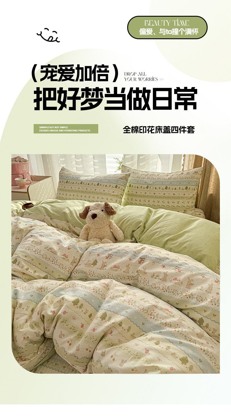 当前位置: 91家纺网 > 商品网购 > 床品套件 > 四件套 > 全棉普通四件套 > KA家纺 2026春夏新款全棉床盖款卡通印花四件套 田园小兔