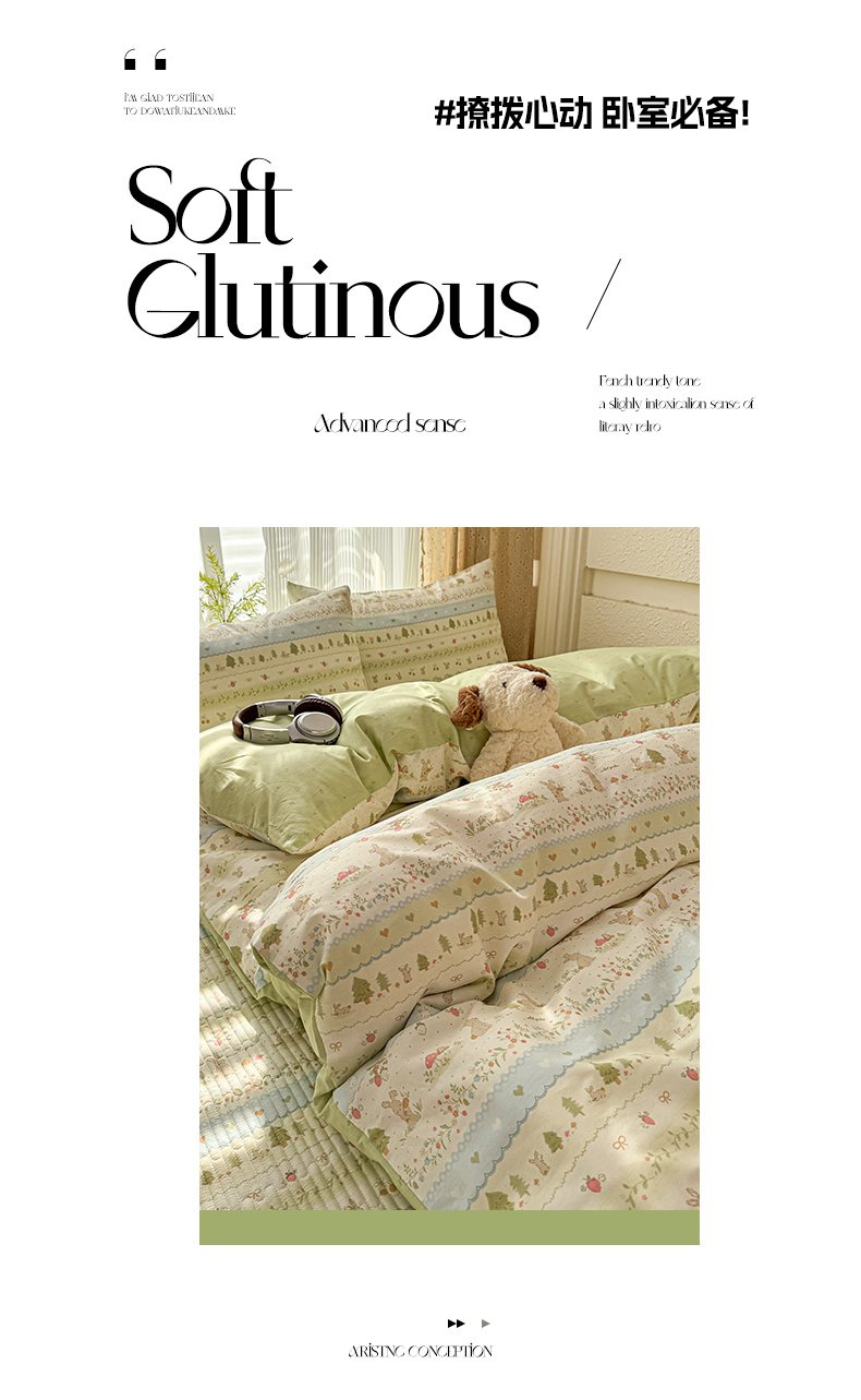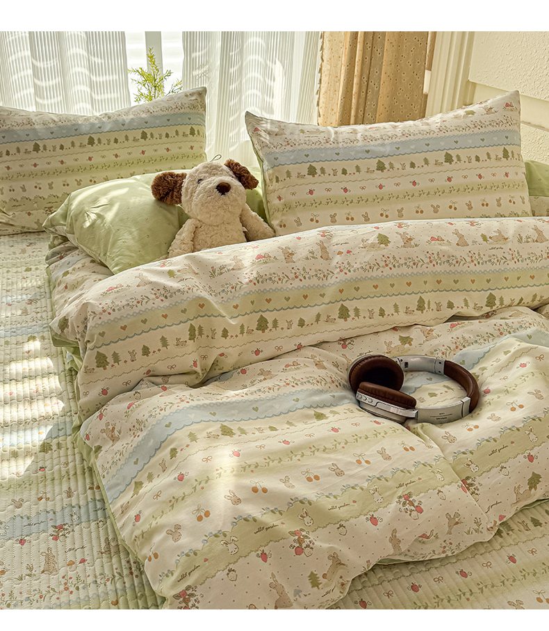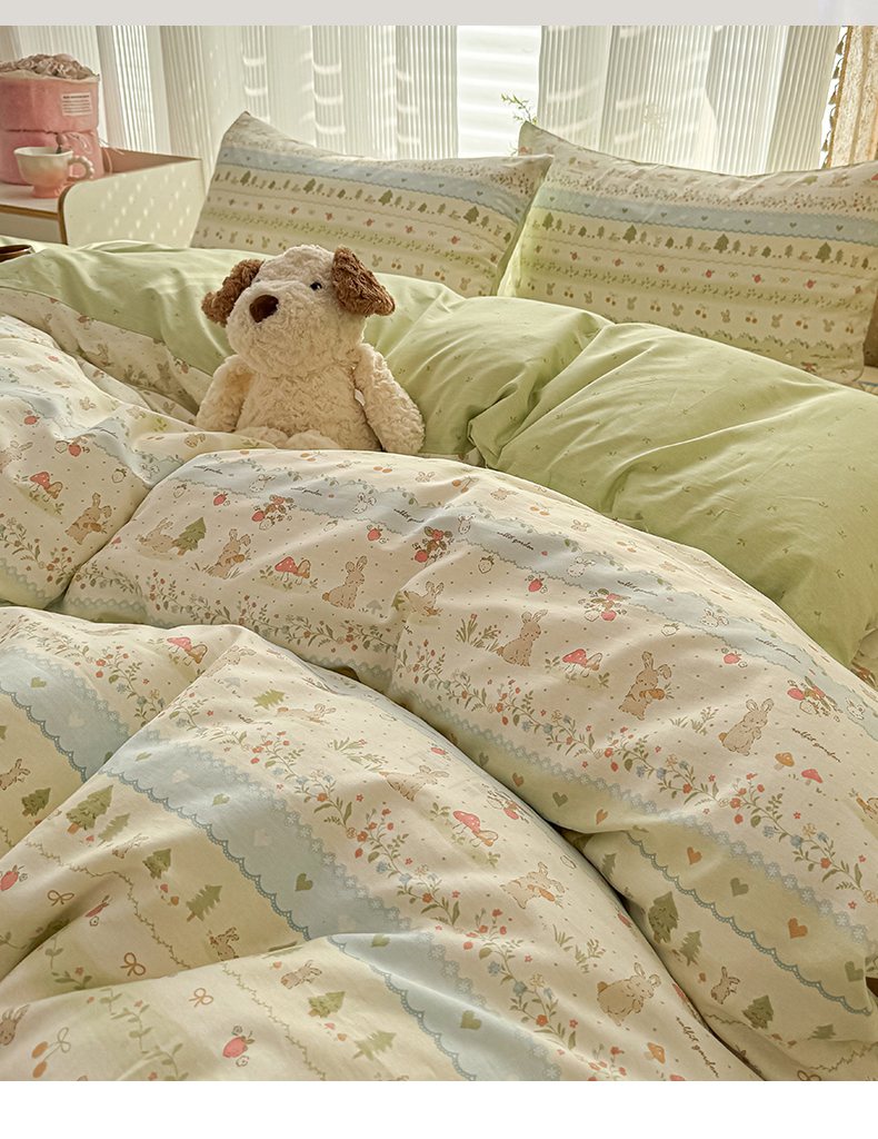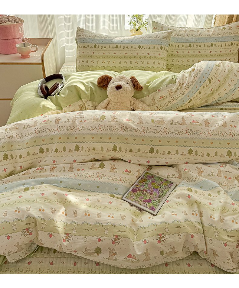 当前位置: 91家纺网 > 商品网购 > 床品套件 > 四件套 > 全棉普通四件套 > KA家纺 2026春夏新款全棉床盖款卡通印花四件套 田园小兔