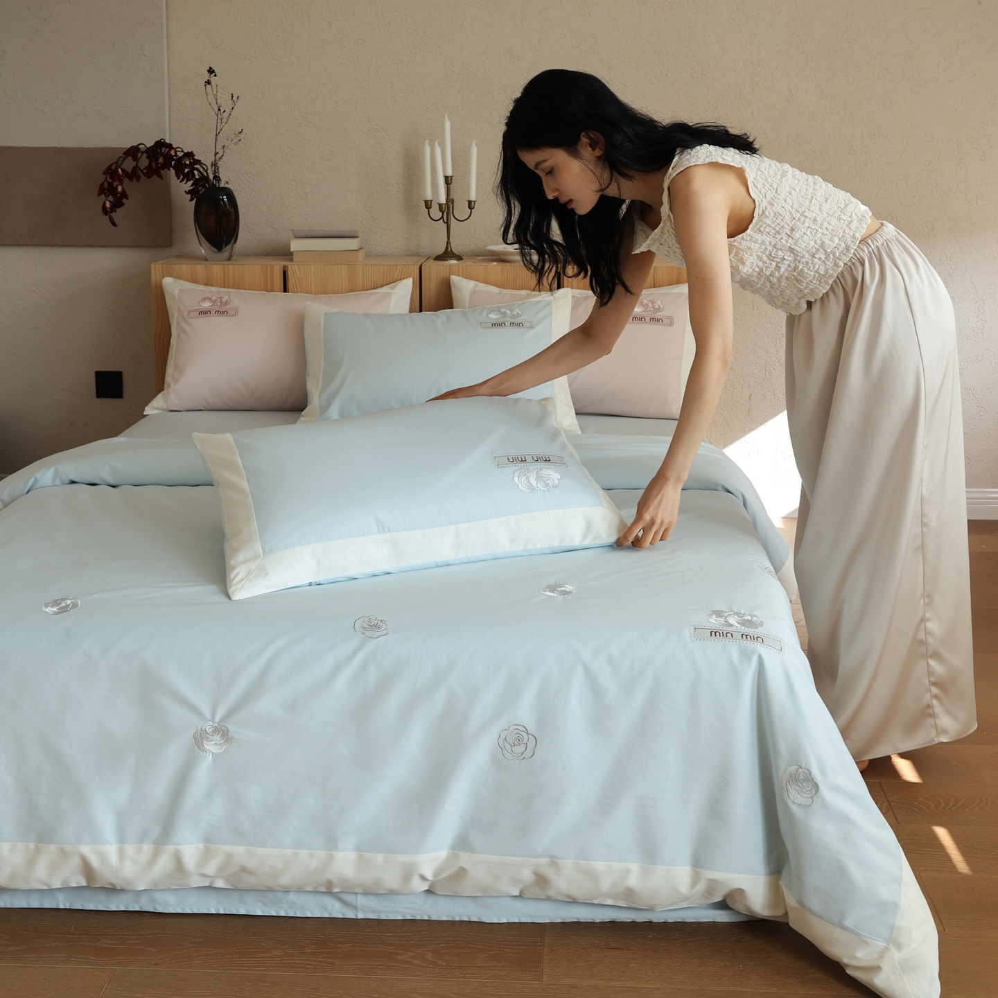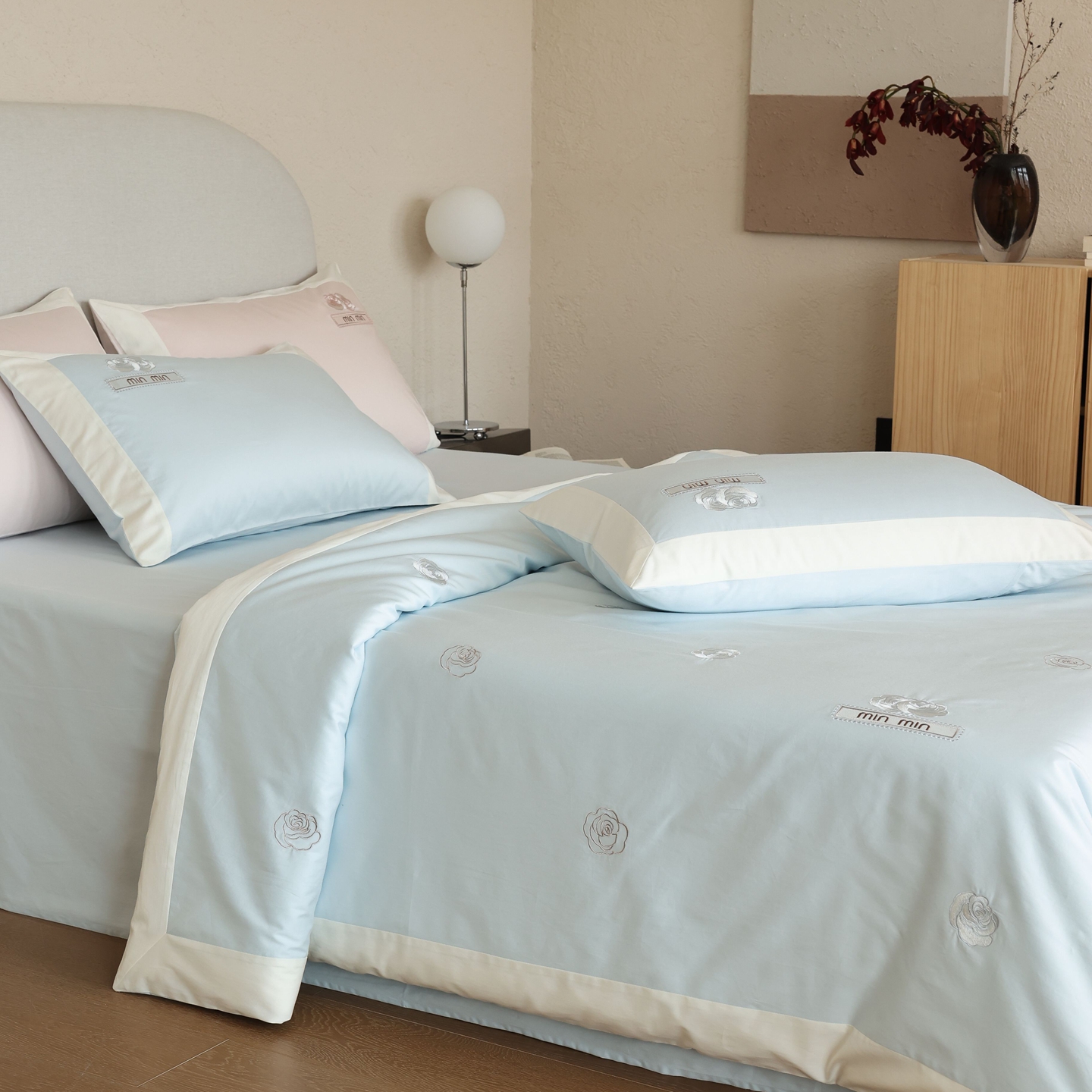 (总)初拾 2025新款全棉简约刺绣四件套-柏林,柏林-浅香槟,柏林-浅云蓝,柏林-雅灰粉