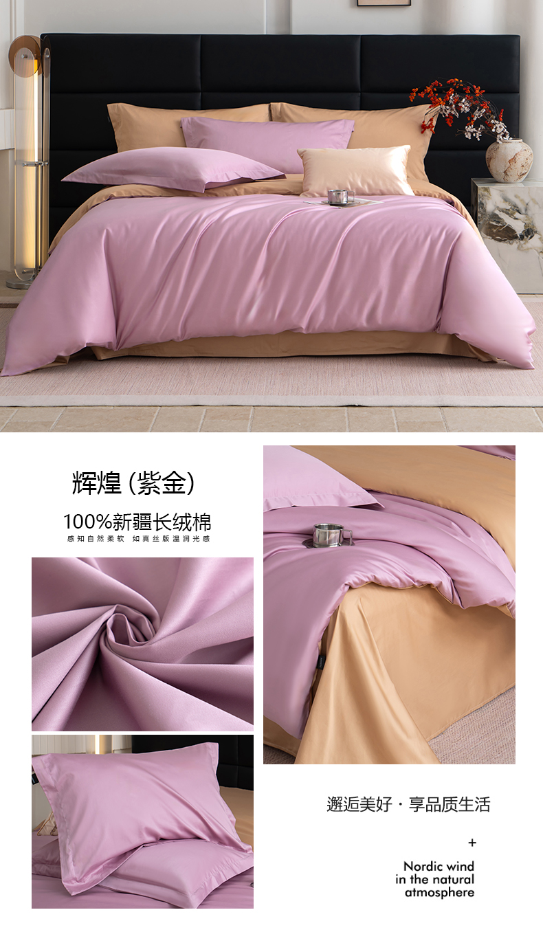 当前位置: 91家纺网 > 商品网购 > 床品套件 > 四件套 > 长绒棉四件套 > 凌云家纺 2026春夏新款A类100支长绒棉四件套-辉煌 礼盒装 提供买家秀 联系客服 辉煌(豆沙粉金)