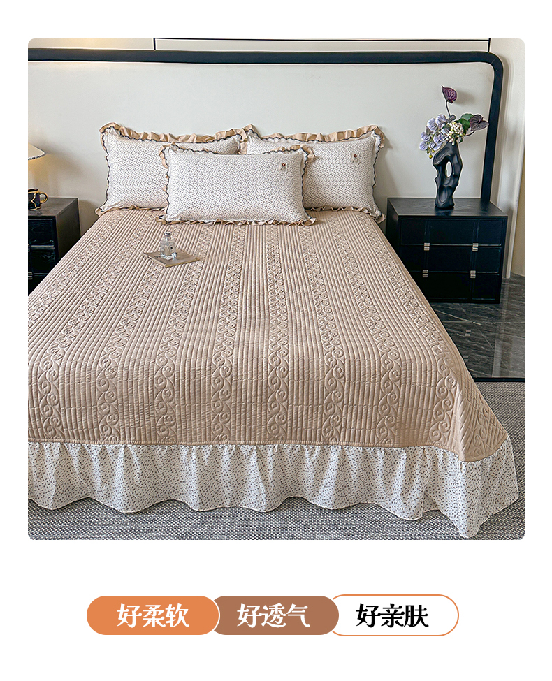 商品名称:梓之赫 2026新款云感纱夹棉床盖四件套-小美满 小美满-摩卡棕