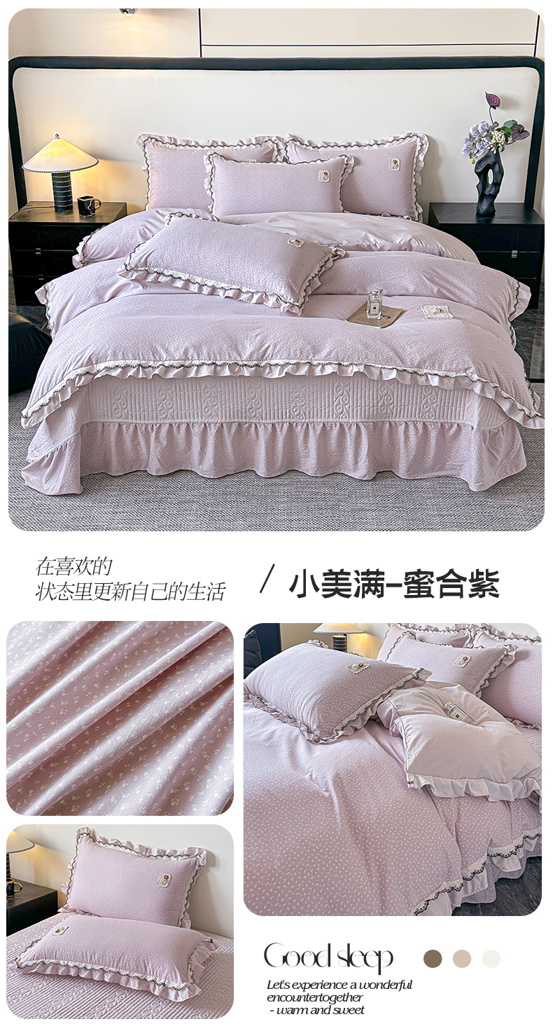 (总)梓之赫 2026新款云感纱夹棉床盖四件套-小美满,小美满-高级灰,小美满-可可棕,小美满-迷雾灰,小美满-蜜合紫,小美满-摩卡棕,小美满-奶茶色,小美满-奶油粉