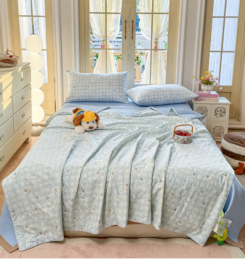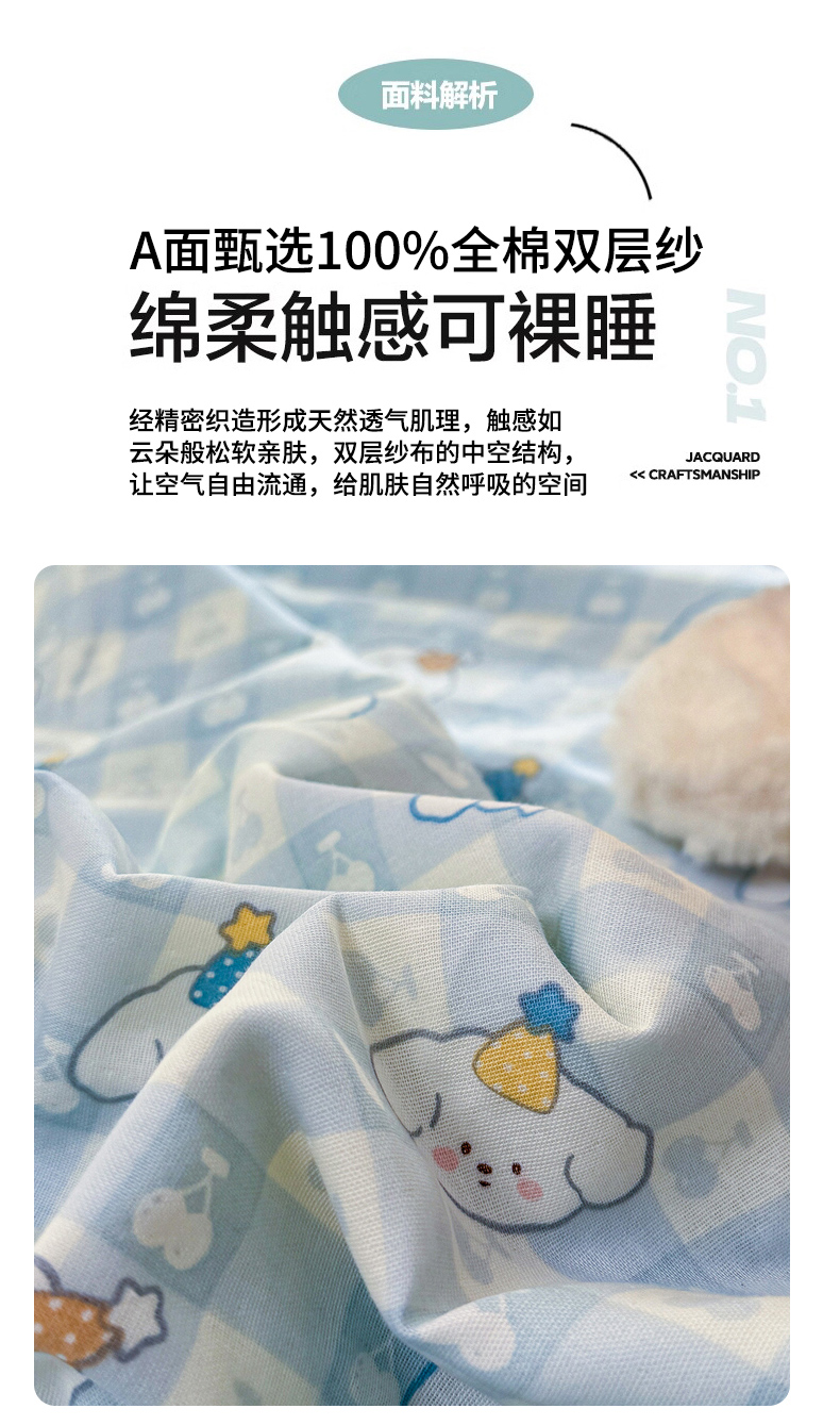 当前位置: 91家纺网 > 商品网购 > 床品套件 > 四件套 > 其它四件套 > 木楌家居 2026新款全棉纱布云感冰冰被床盖四件套系列 樱桃狗