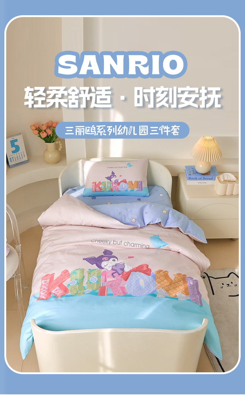 (总)蘭菲家纺 2026新款幼儿园儿童三丽欧系列多件套,必爱乐奶茶,波点KT,车站KT,大杯奶茶,逛街狗,精致狗狗,可爱KT灰,快乐小库,快乐休假,露营快乐,美乐必爱,轻松美乐蒂,涂鸦KT,夏日快乐,小库儿,小库故事