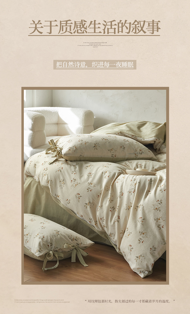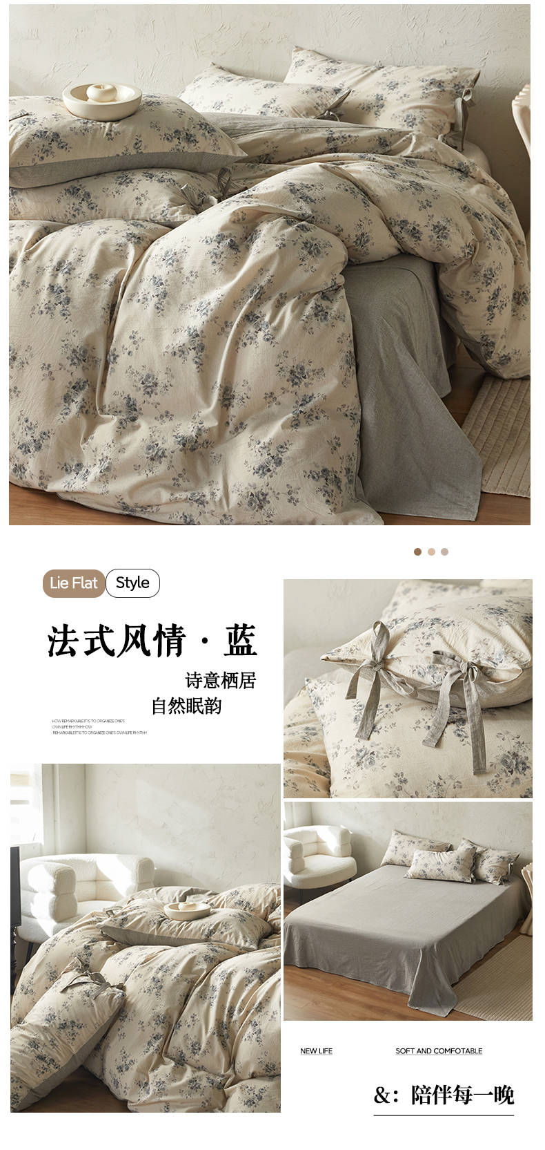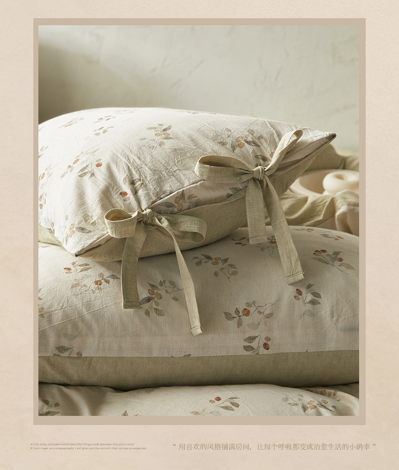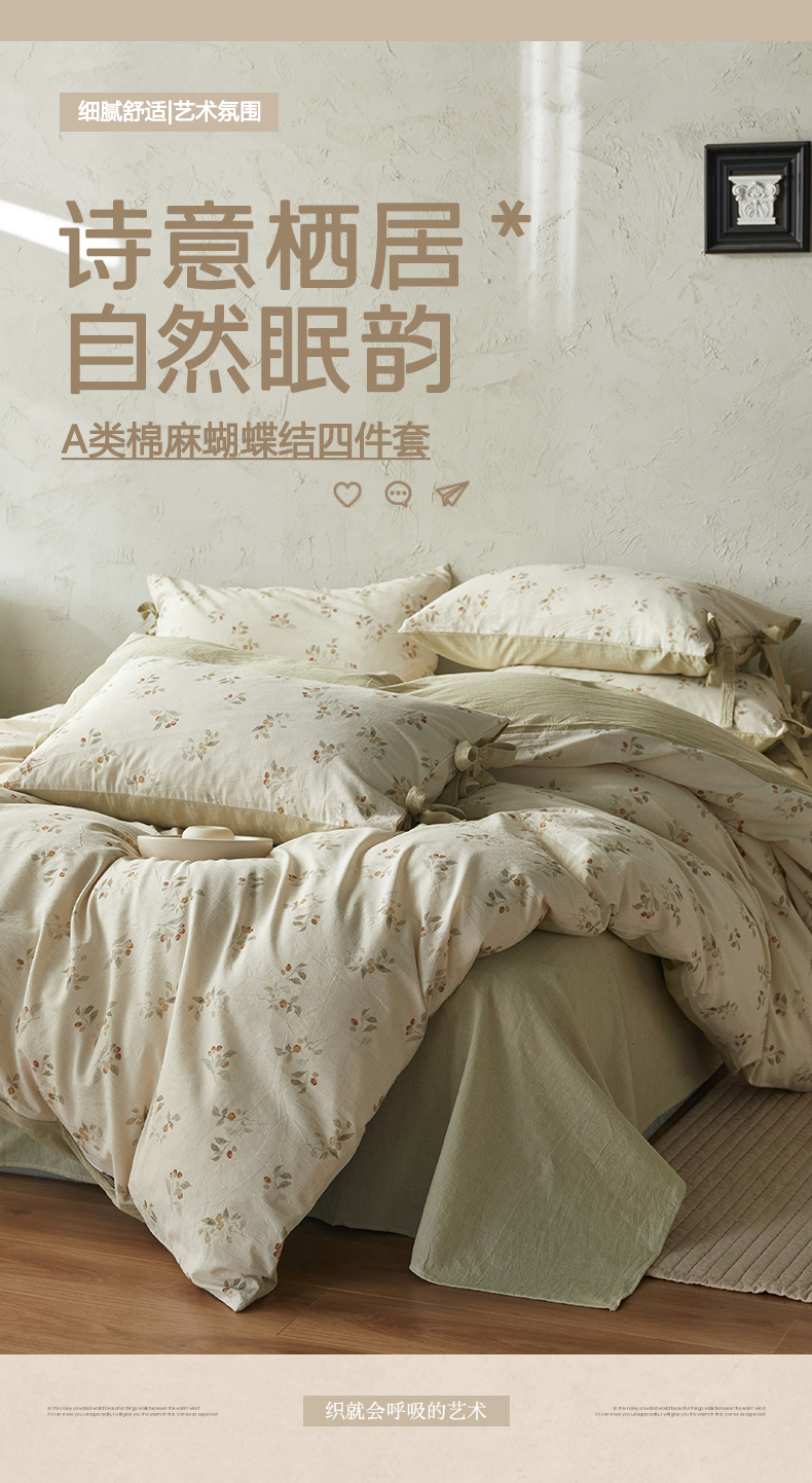 商品名称:(总)绫韵家纺 2026春夏新款A类印花棉麻蝴蝶结四件套