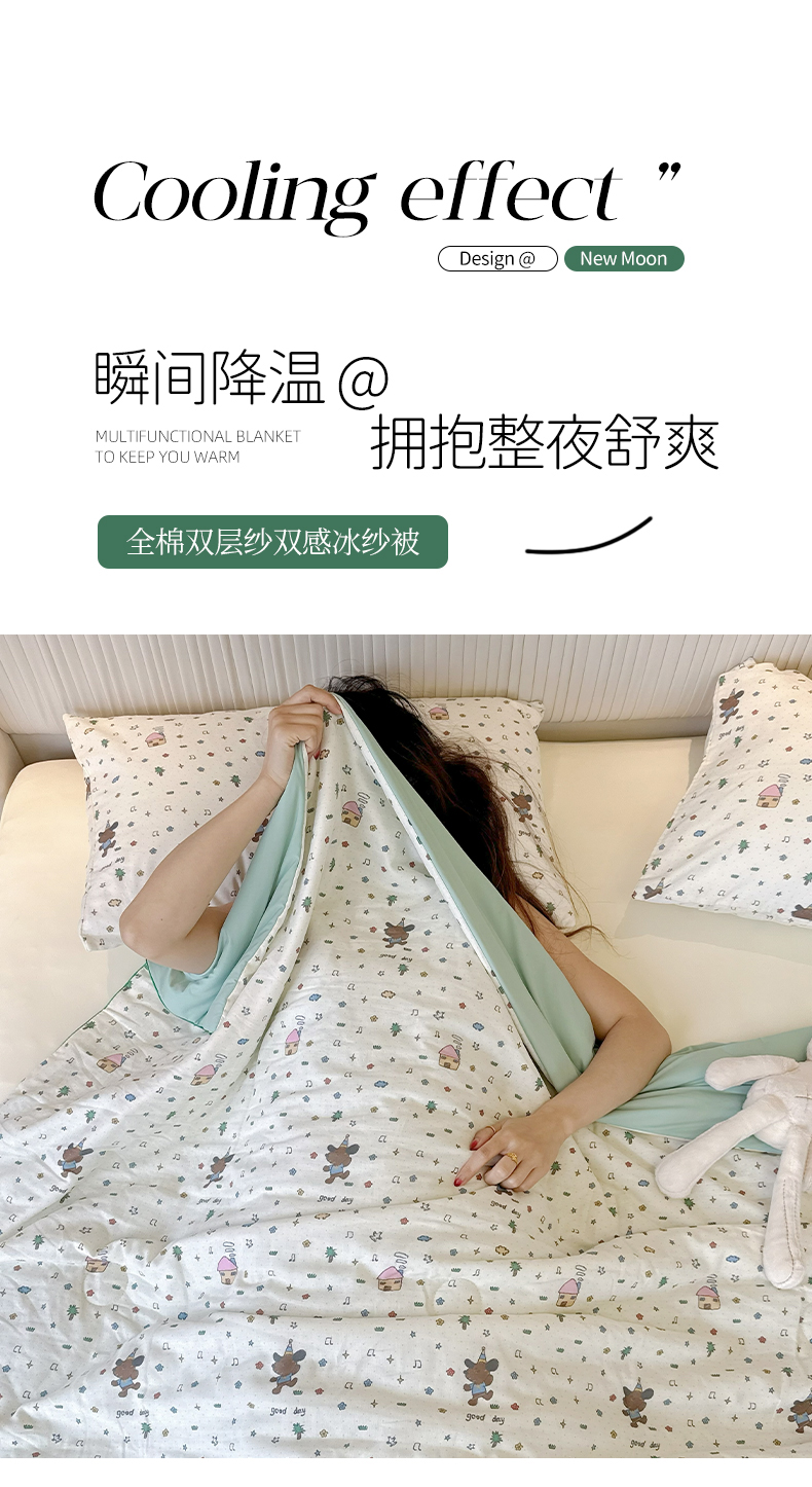 兜米家居 2026春夏新款小红书热销款有氧全棉纯棉双层纱双感冰纱被夏凉被被子被芯 碎花宠物