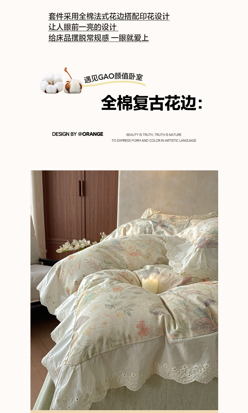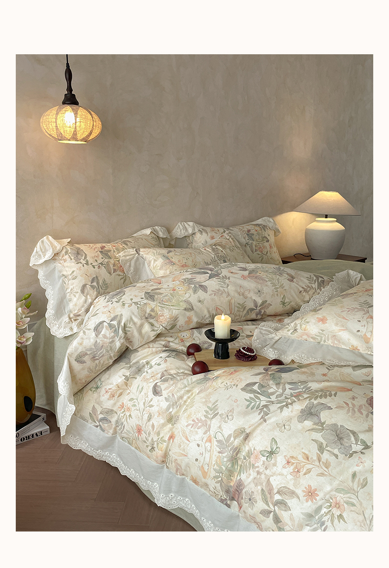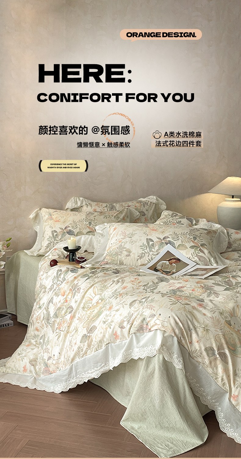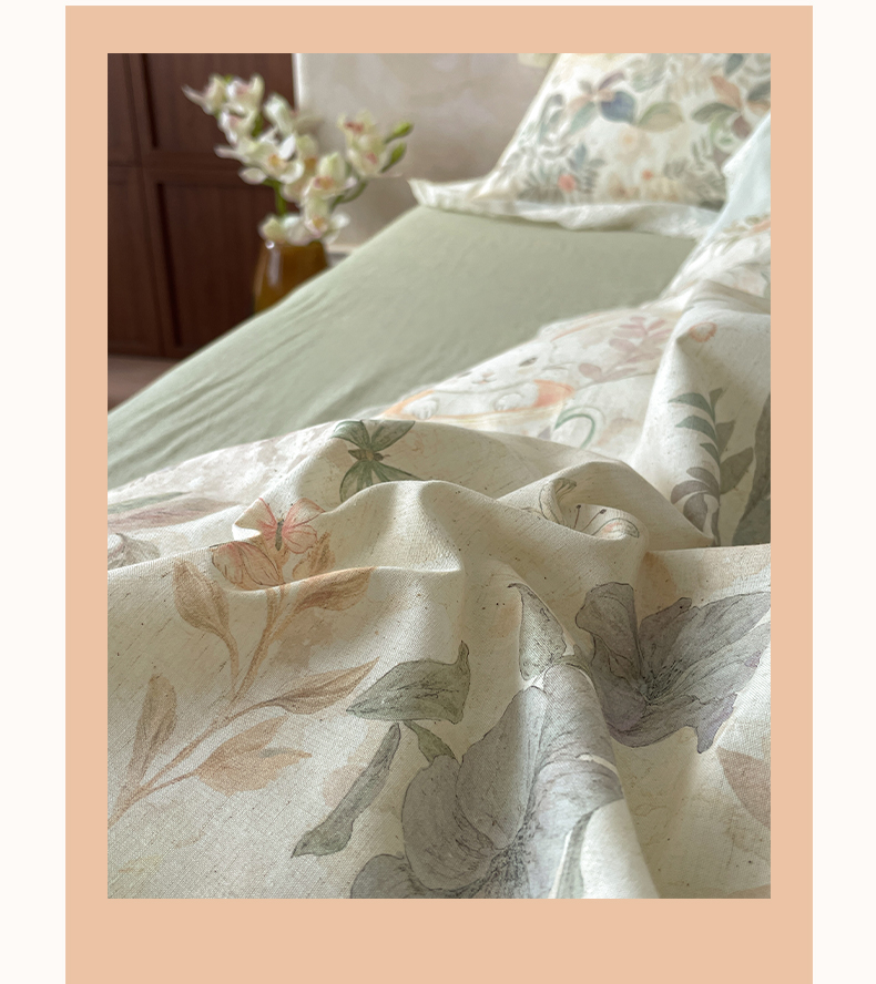(总)莱登卡奴 2026新款A类棉麻数码印花25%麻75%棉法式复古花边四件套