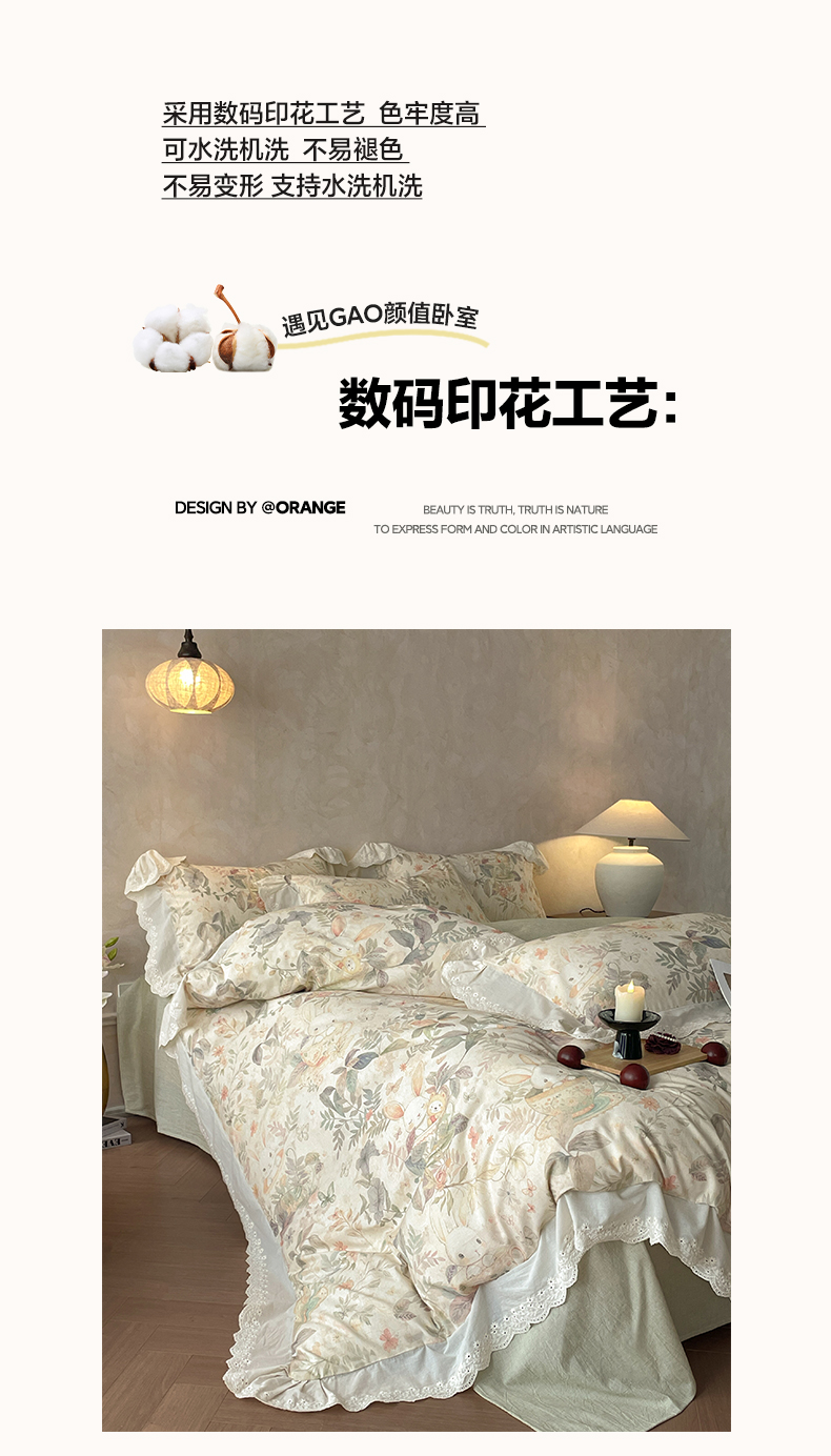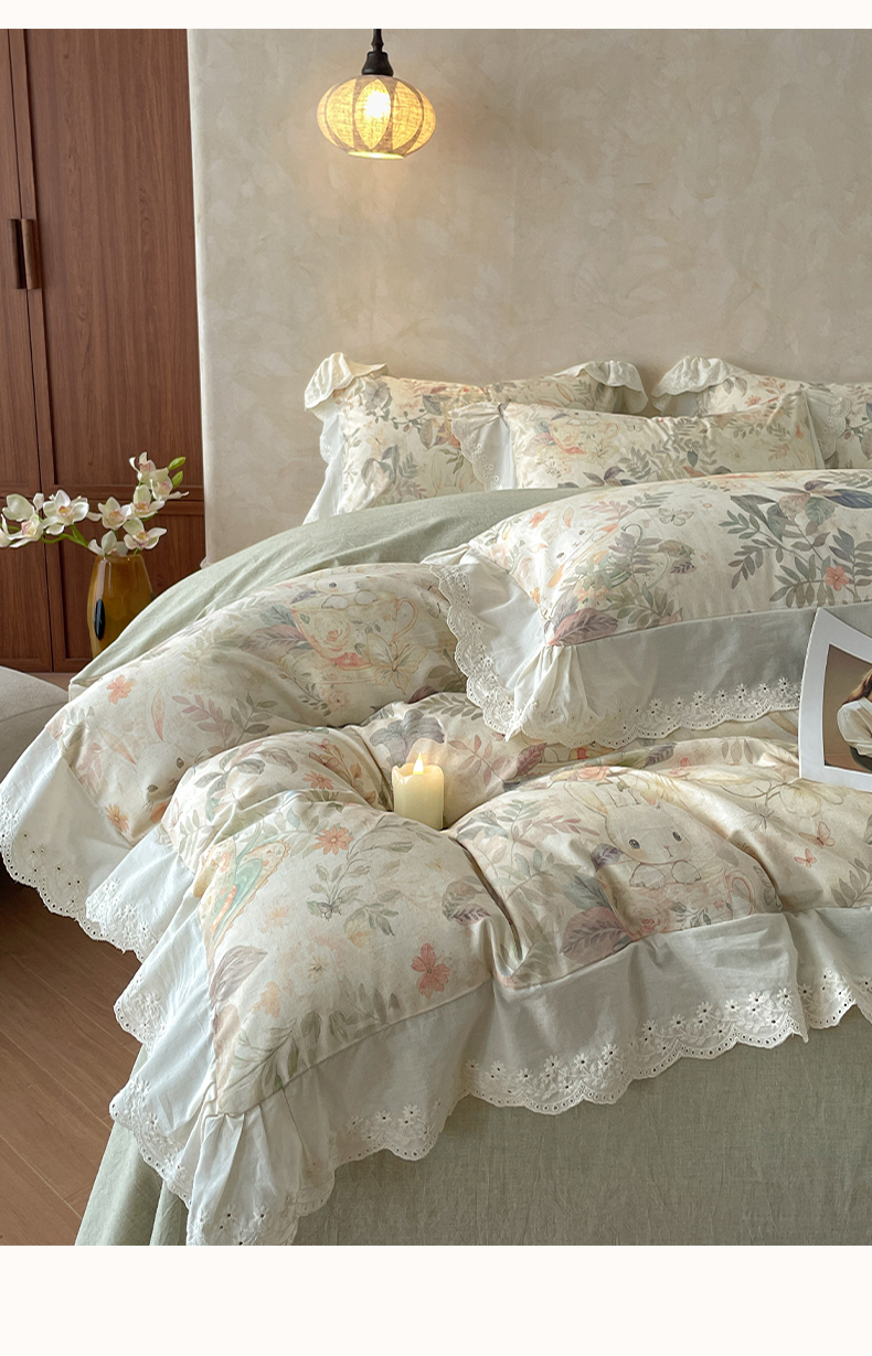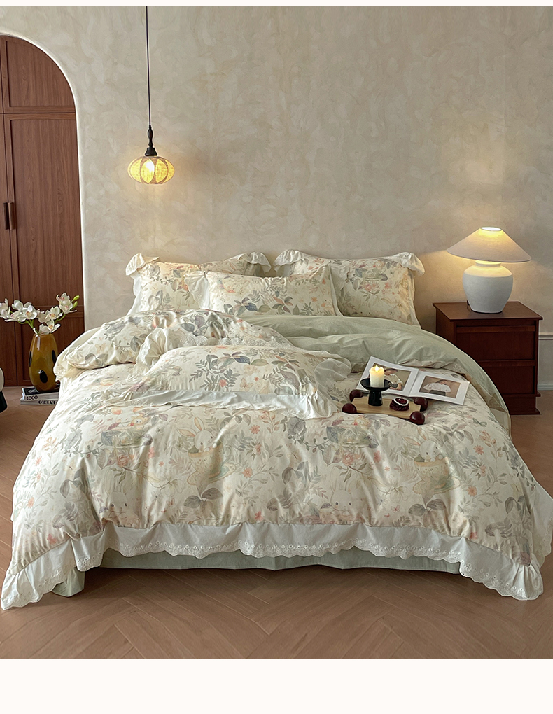 (总)莱登卡奴 2026新款A类棉麻数码印花25%麻75%棉法式复古花边四件套