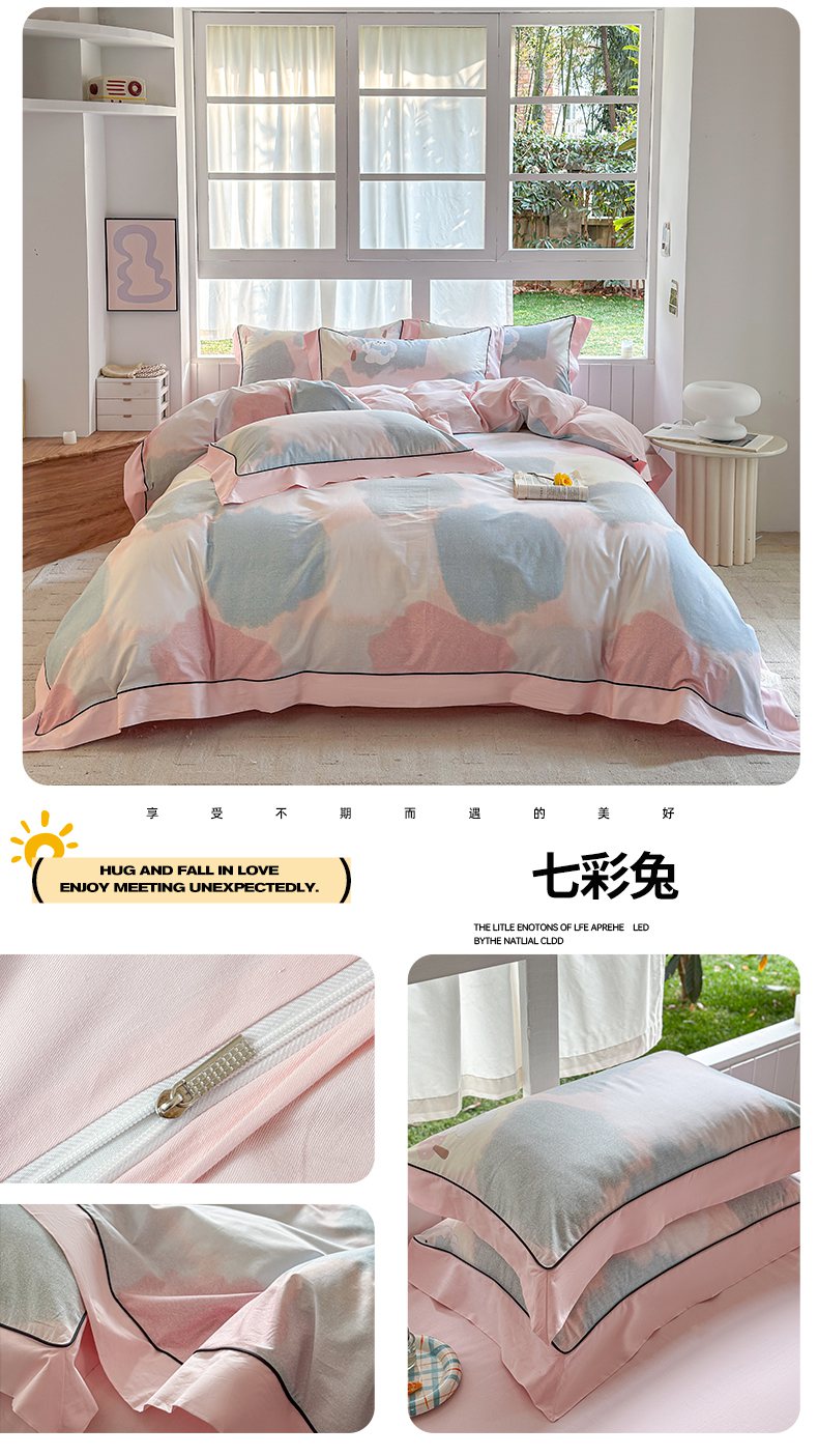 当前位置: 91家纺网 > 商品网购 > 床品套件 > 四件套 > 全棉普通四件套 > 7V 2026新款嵌绳宽边纯棉四件套13376全棉小清新喷气宽幅长绒棉被套床单床笠套件 眠眠笔记