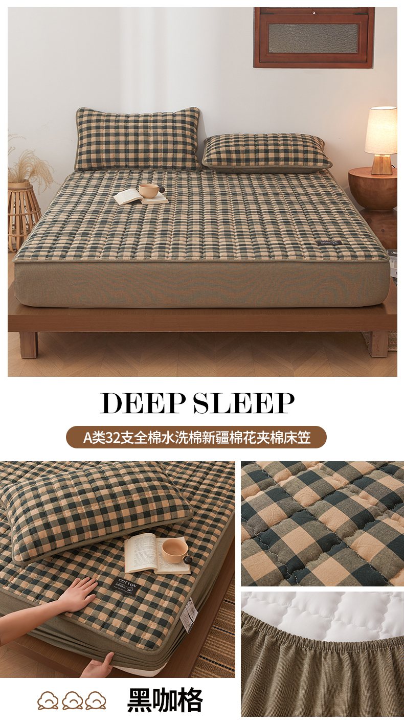 • 91家纺网 家纺一手货源 找家纺 3C 2026新款全棉水洗棉棉花夹棉床笠 棕咖格