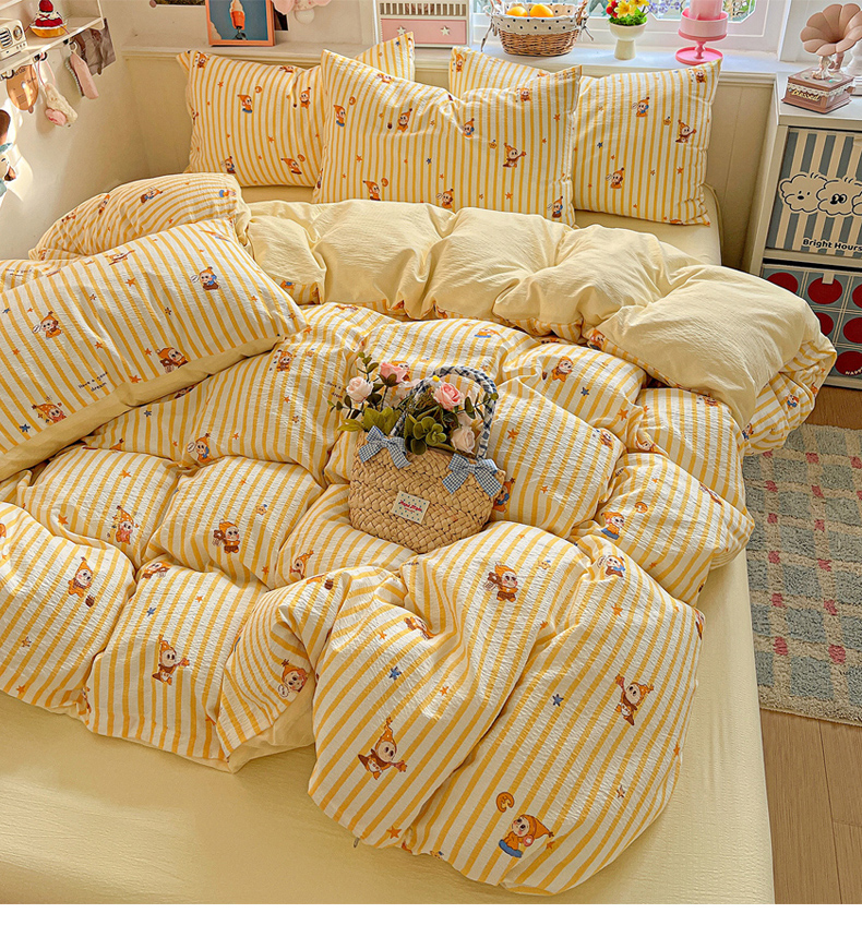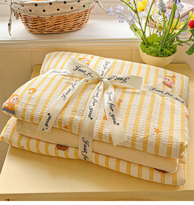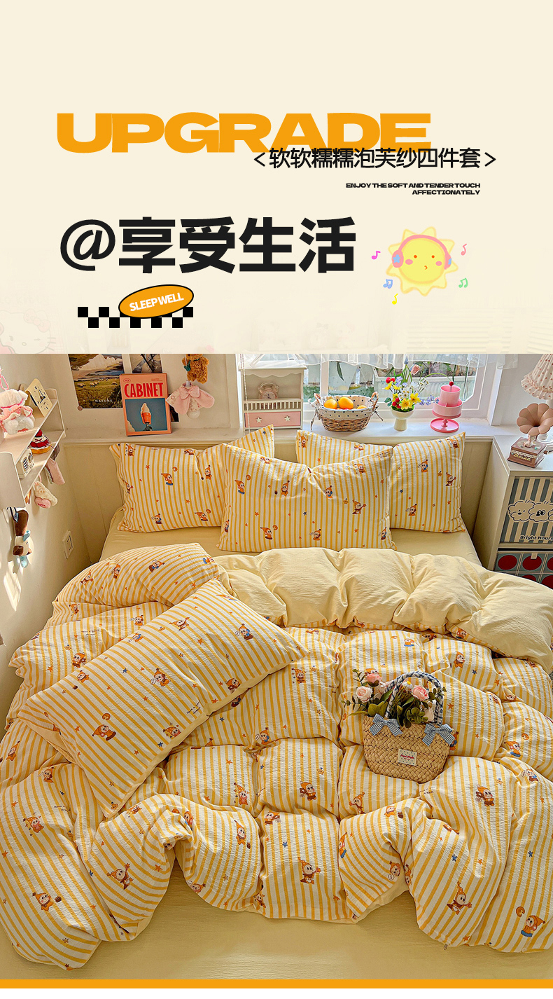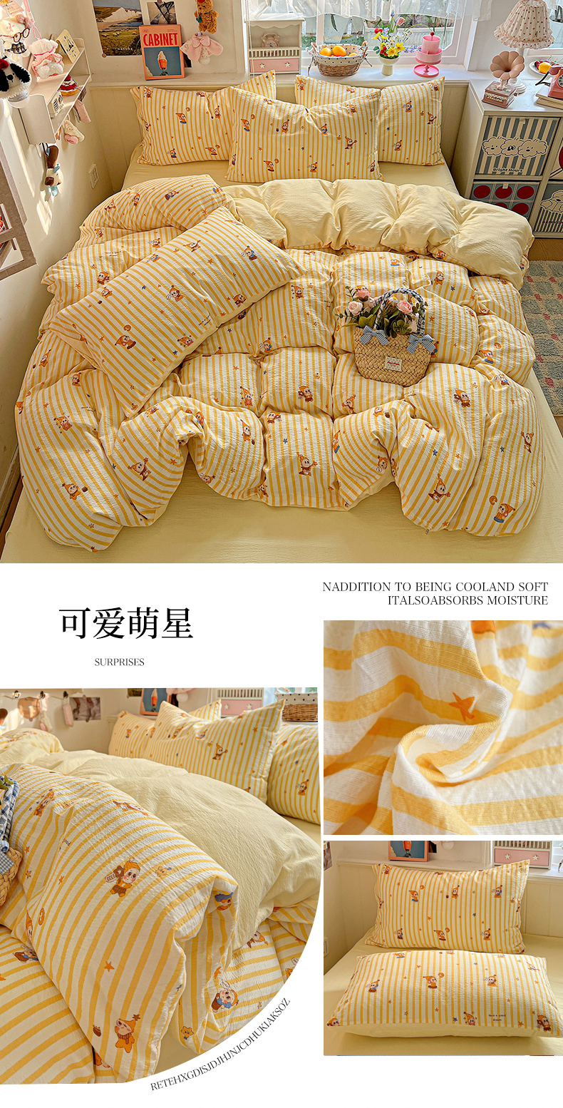 当前位置: 91家纺网 > 商品网购 > 床品套件 > 四件套 > 双层纱四件套 > N先生+V 13814689556 发大图/买家秀 2026春夏新款泡芙云感双层纱四件套 可爱萌星