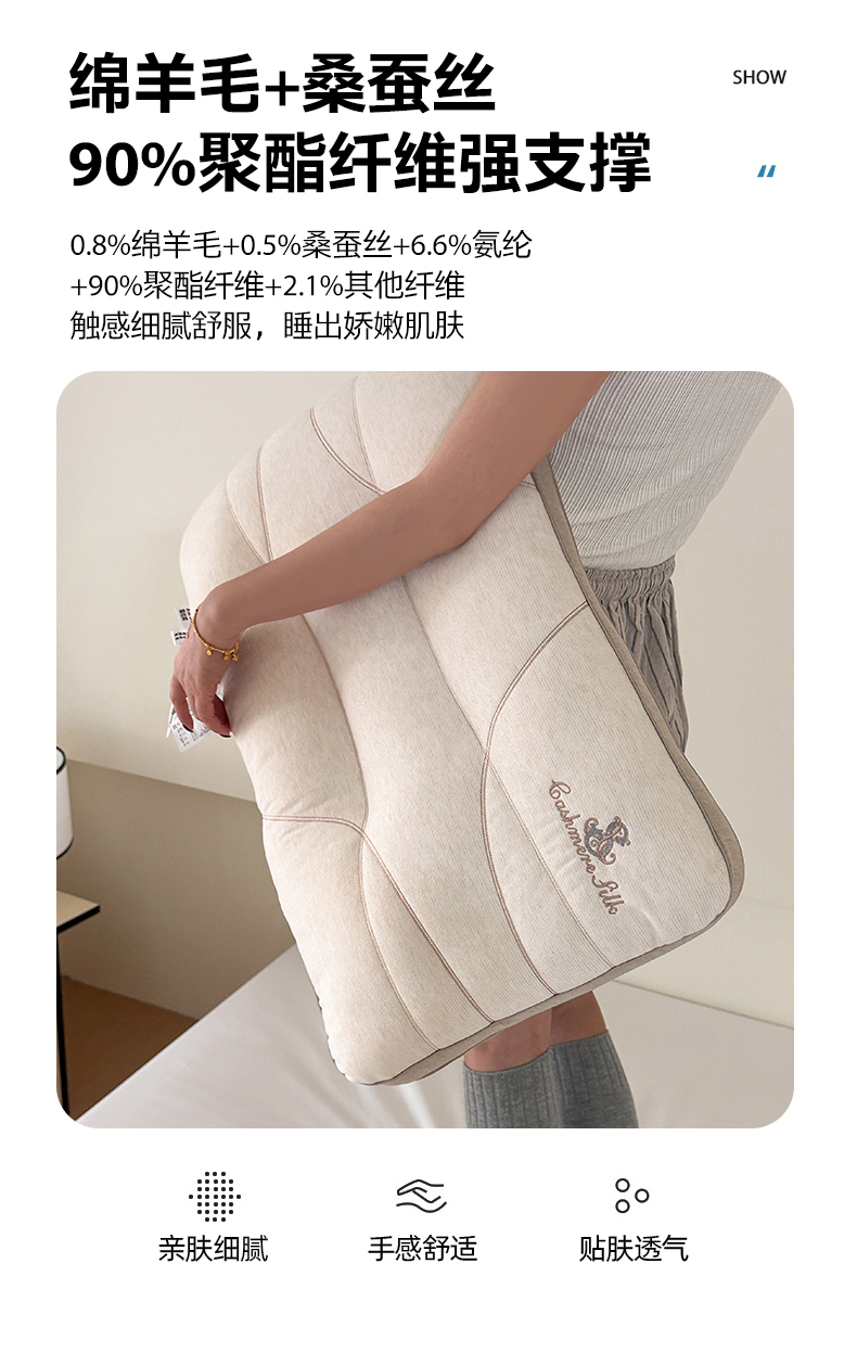 当前位置: 91家纺网 > 商品网购 > 枕头/枕芯/保健枕/颈椎枕 > 枕头枕芯 > (总)伟邦枕芯 2026春夏新款羊绒蚕丝纤维护颈枕 枕头枕芯