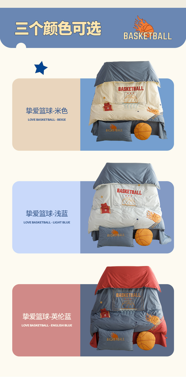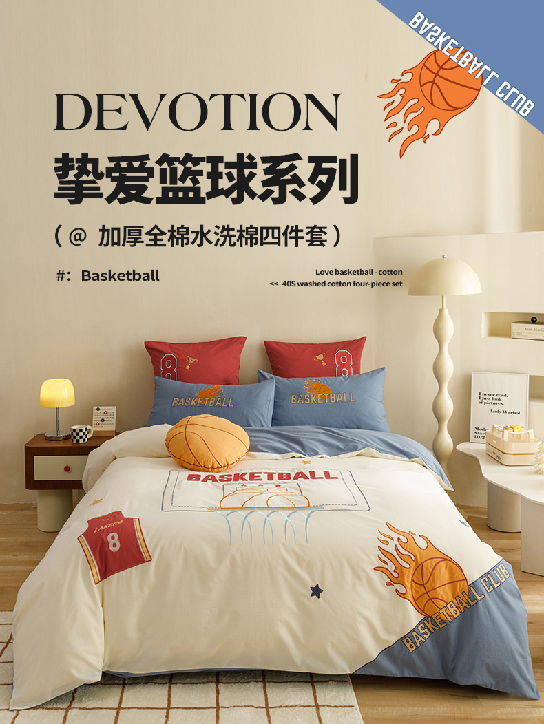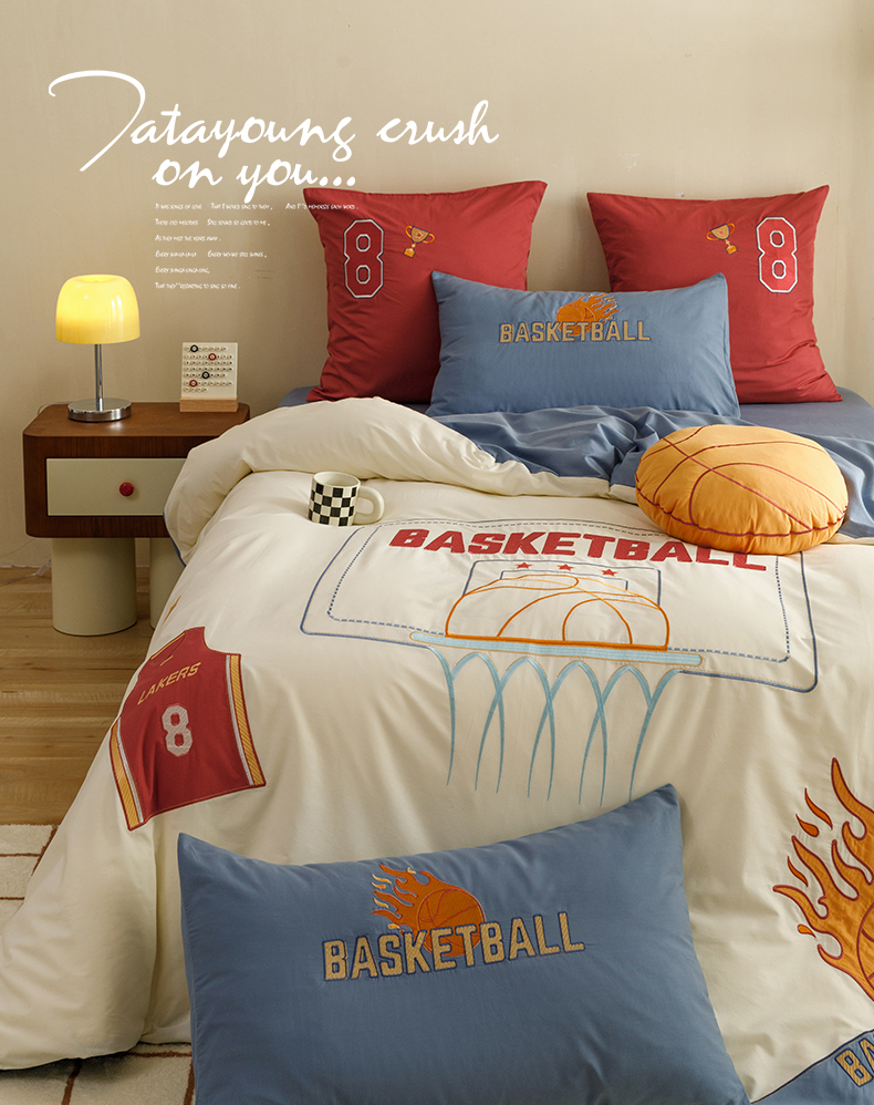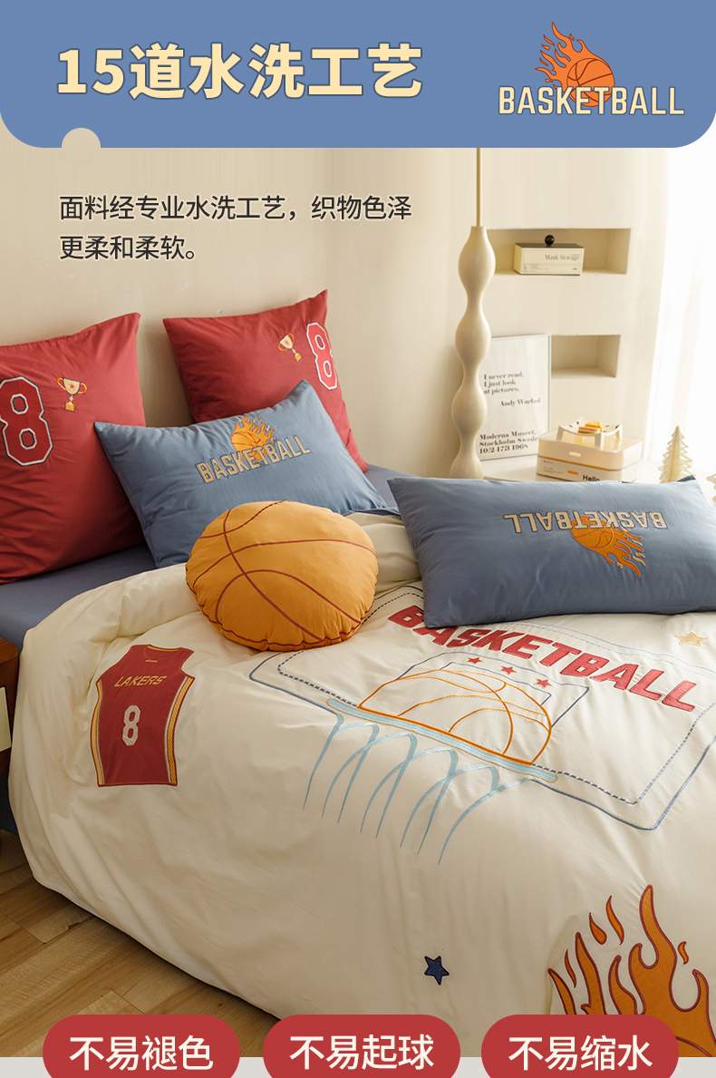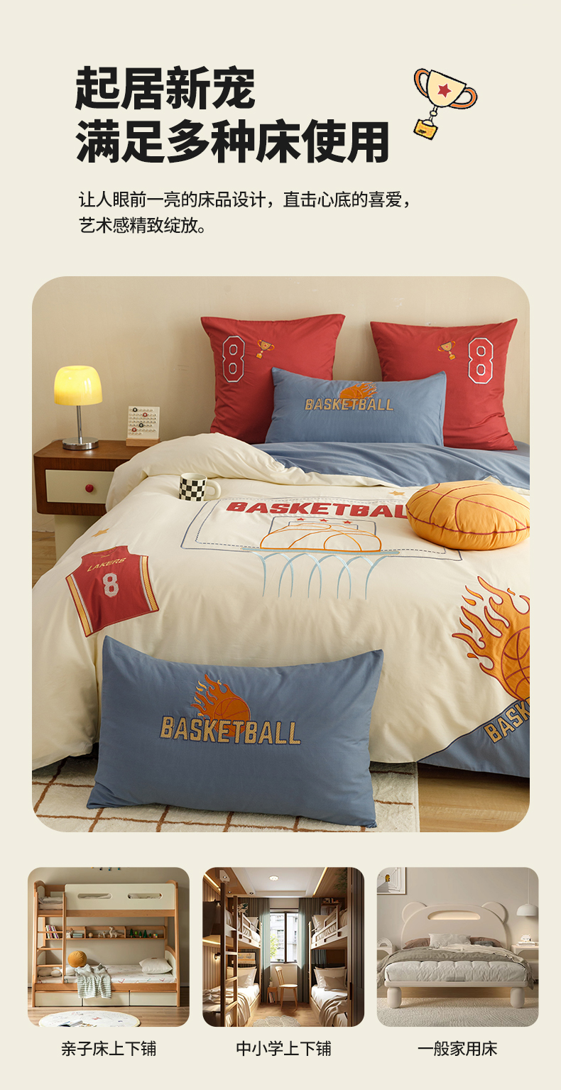 (总)绒梦里2025款A类纯棉水洗棉贴布绣四件套全棉卡通儿童三件套上下铺床套件--篮球系列,挚爱篮球-米色,挚爱篮球-浅蓝,挚爱篮球-英伦蓝