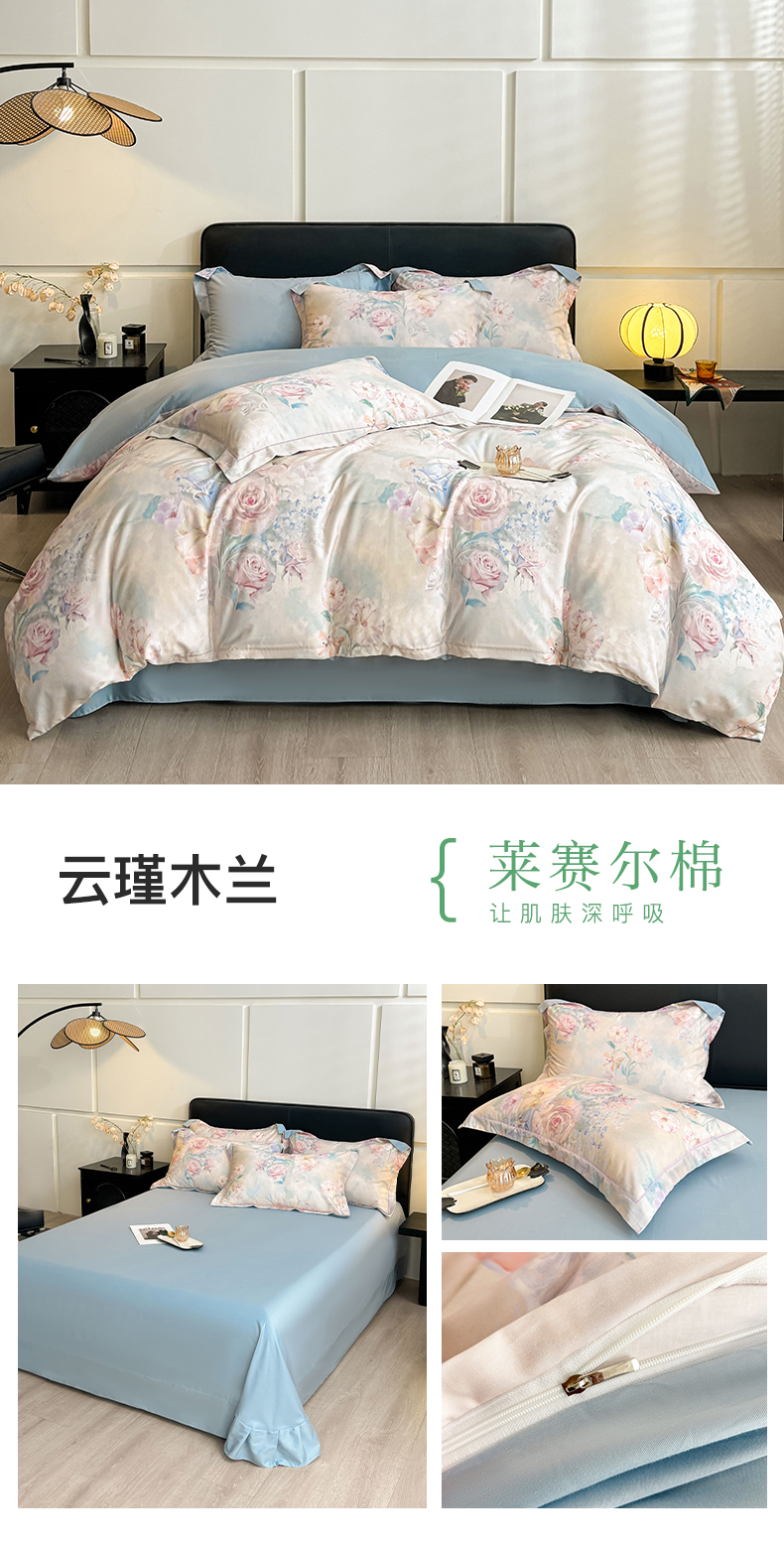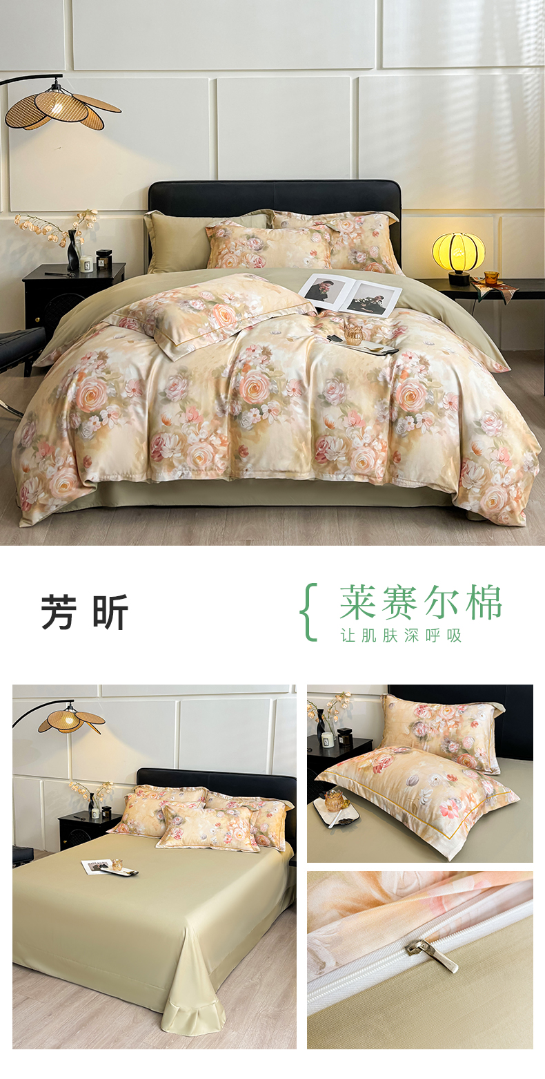(总) 帛美家纺 2025新款40支莱赛尔天丝印花四件套(提供买家秀),花香丽影,妮可,秋色如梦,云梦,云水遥,安静别闹,碧柳,流光影,奶油蔷薇,千山翠,优雅日光