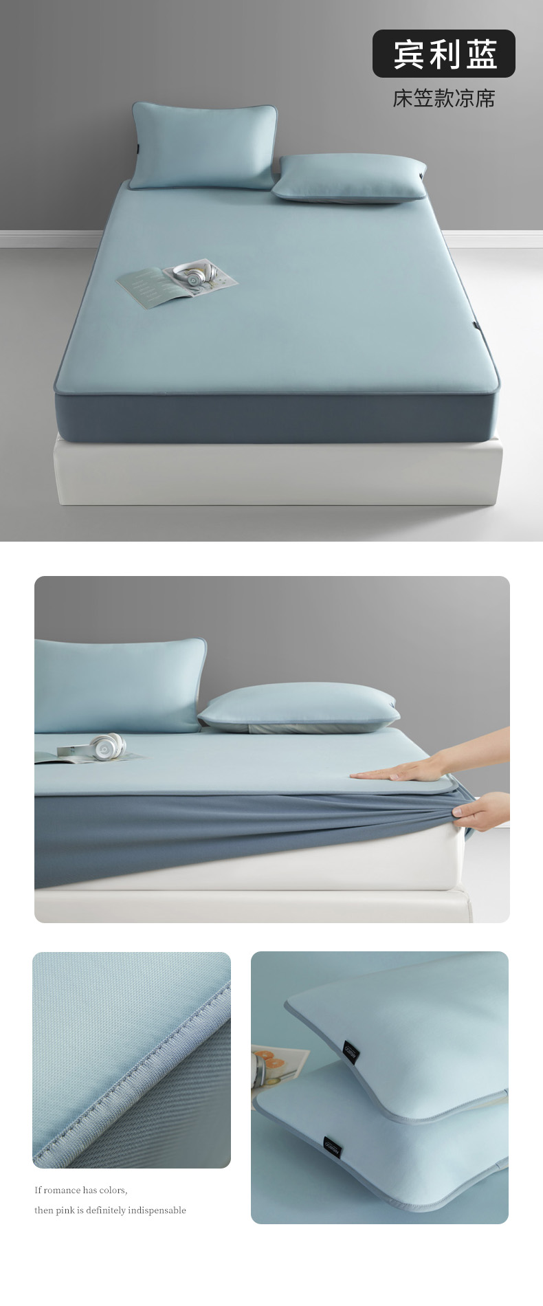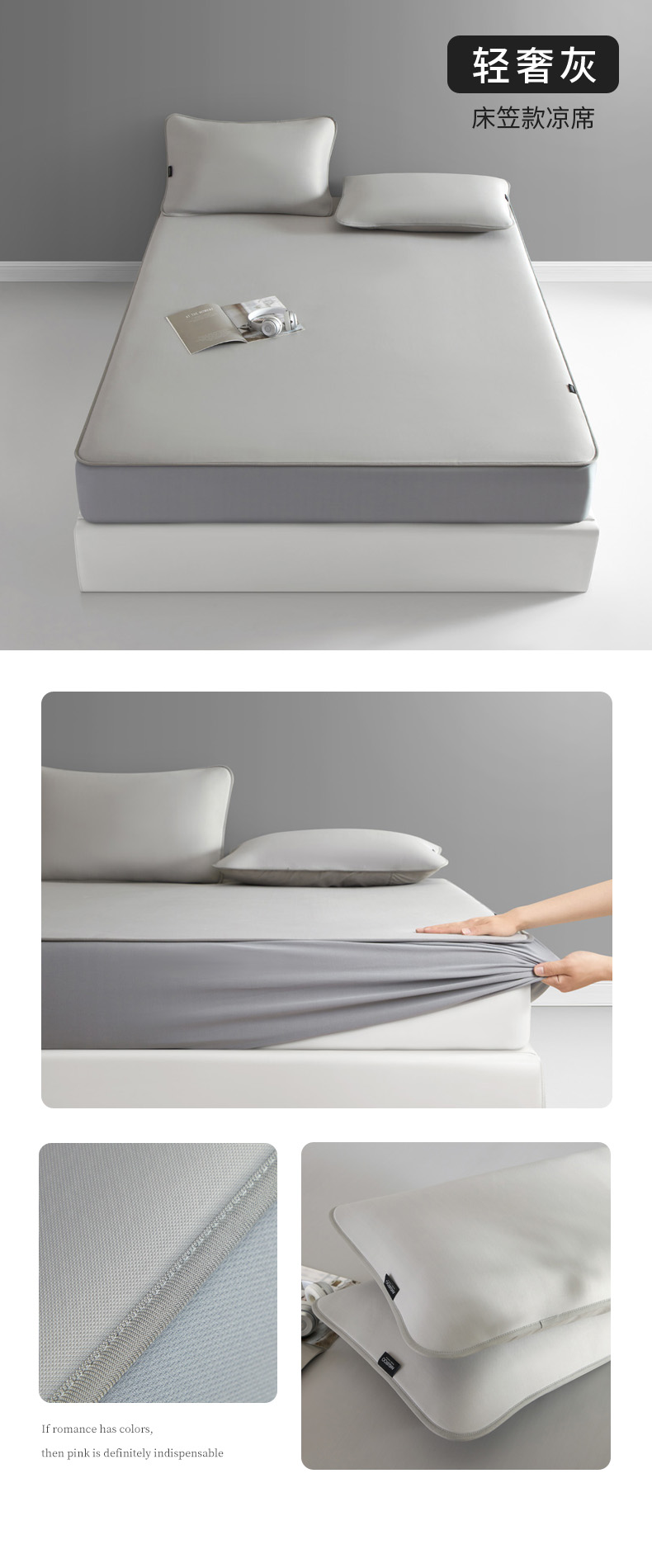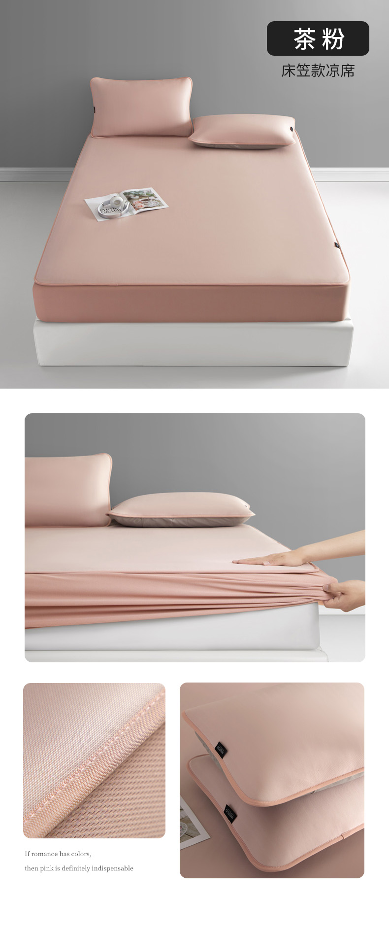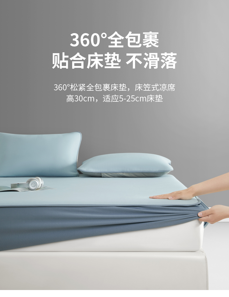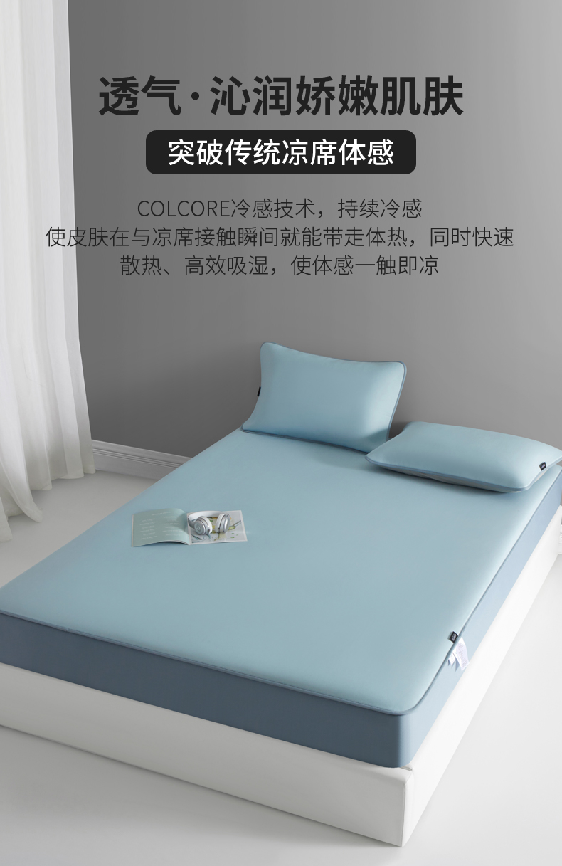 (总)席世家 2025春夏新款430g凉感豆豆床裙席凉席席子-幻影系列,幻影-米灰,幻影-蜜裸粉,幻影-松灰,幻影-星雾蓝